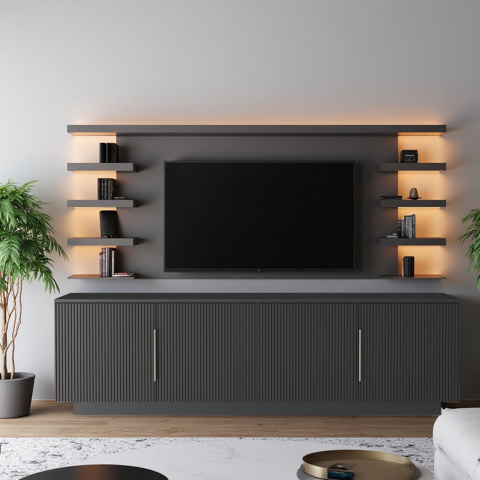 68" Modern TV Stand with 16-Color LED Lights & Media Console