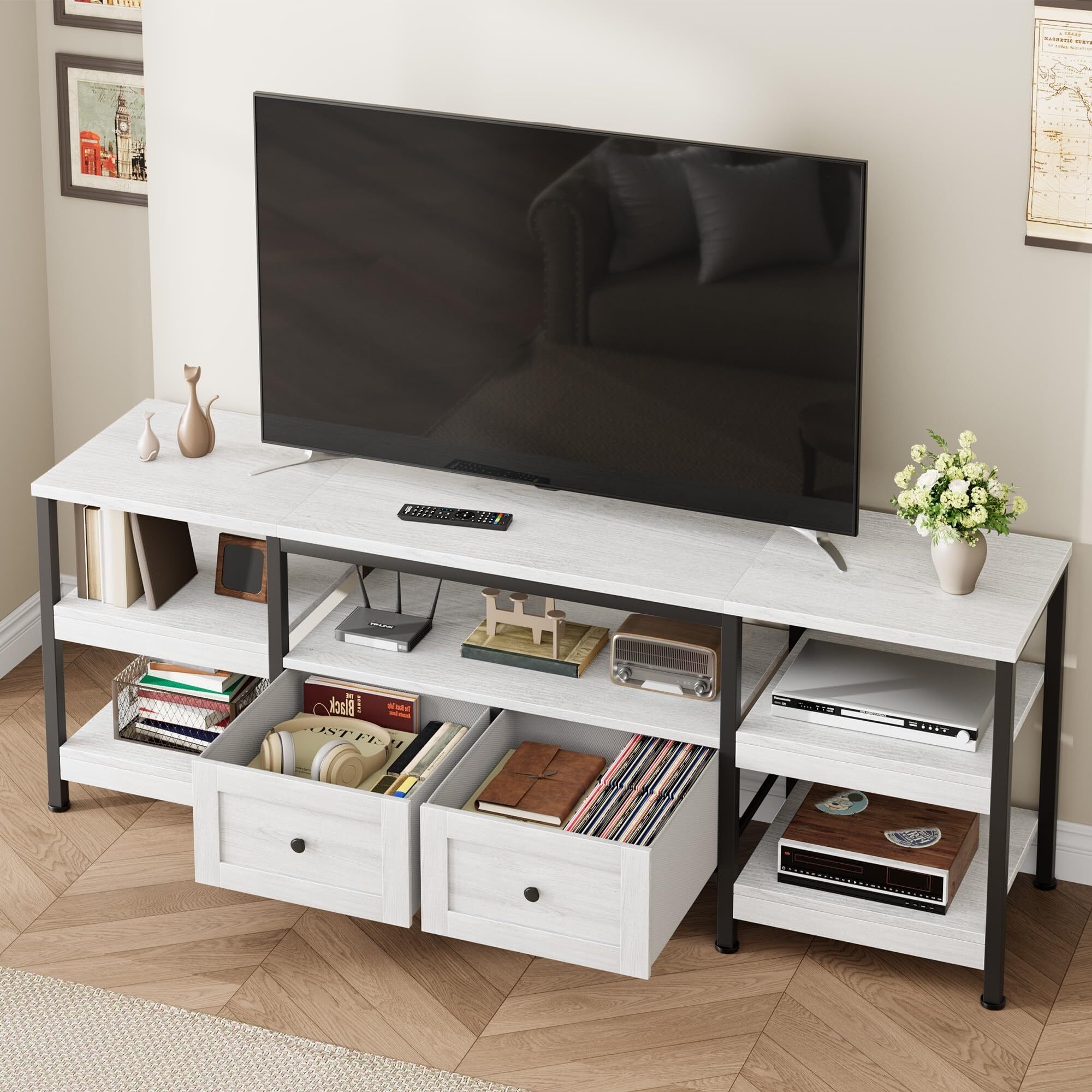 Rustic 63/71/79" TV Stand for TVs Up to 85", Industrial Media Console with 2 Drawers and Open Storage Shelves