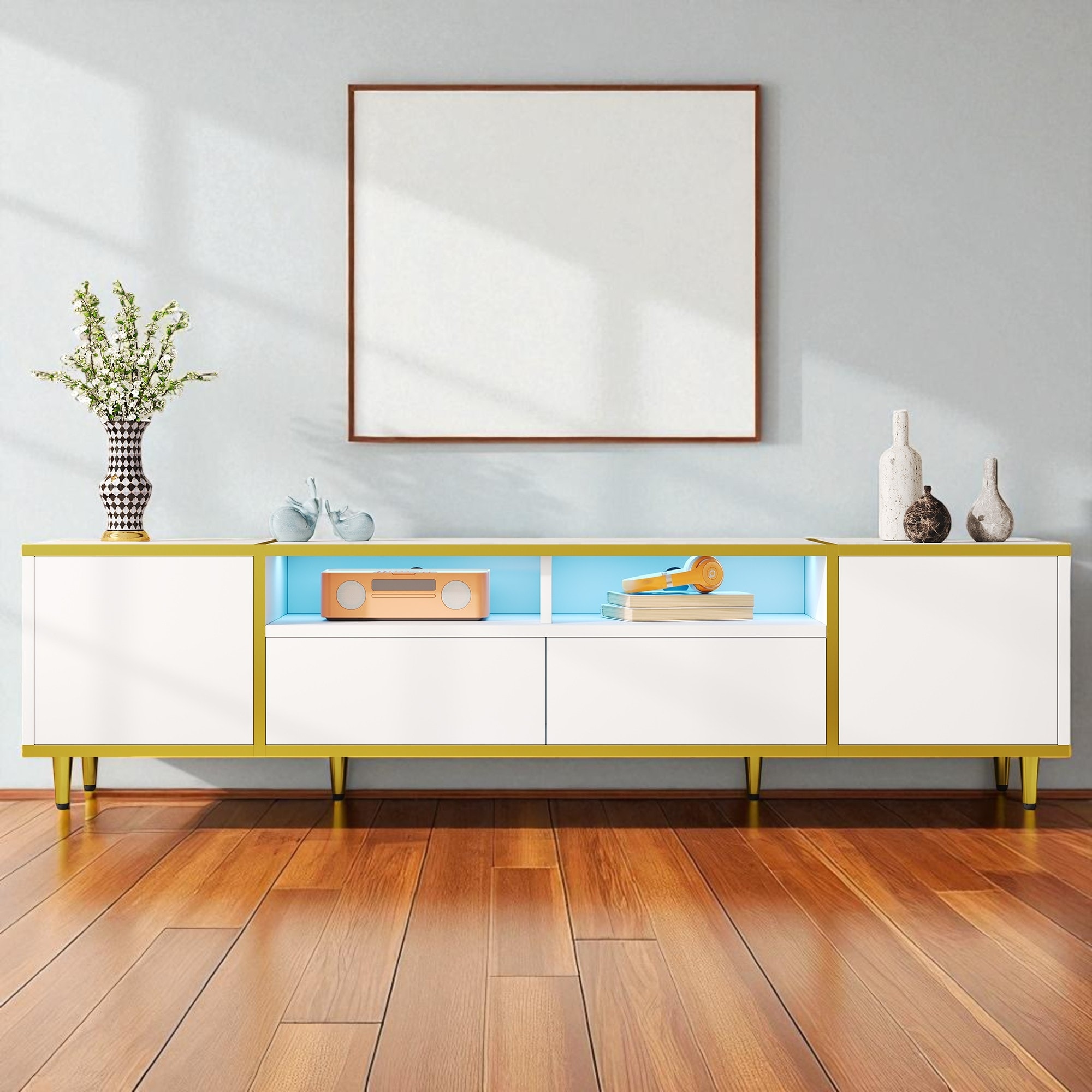 70.9'' TV Stand with LED Lights, 2 Drawers & 2 Cabinets, Entertainment Center with Shelves and Metal Legs for TVs Up to 80''