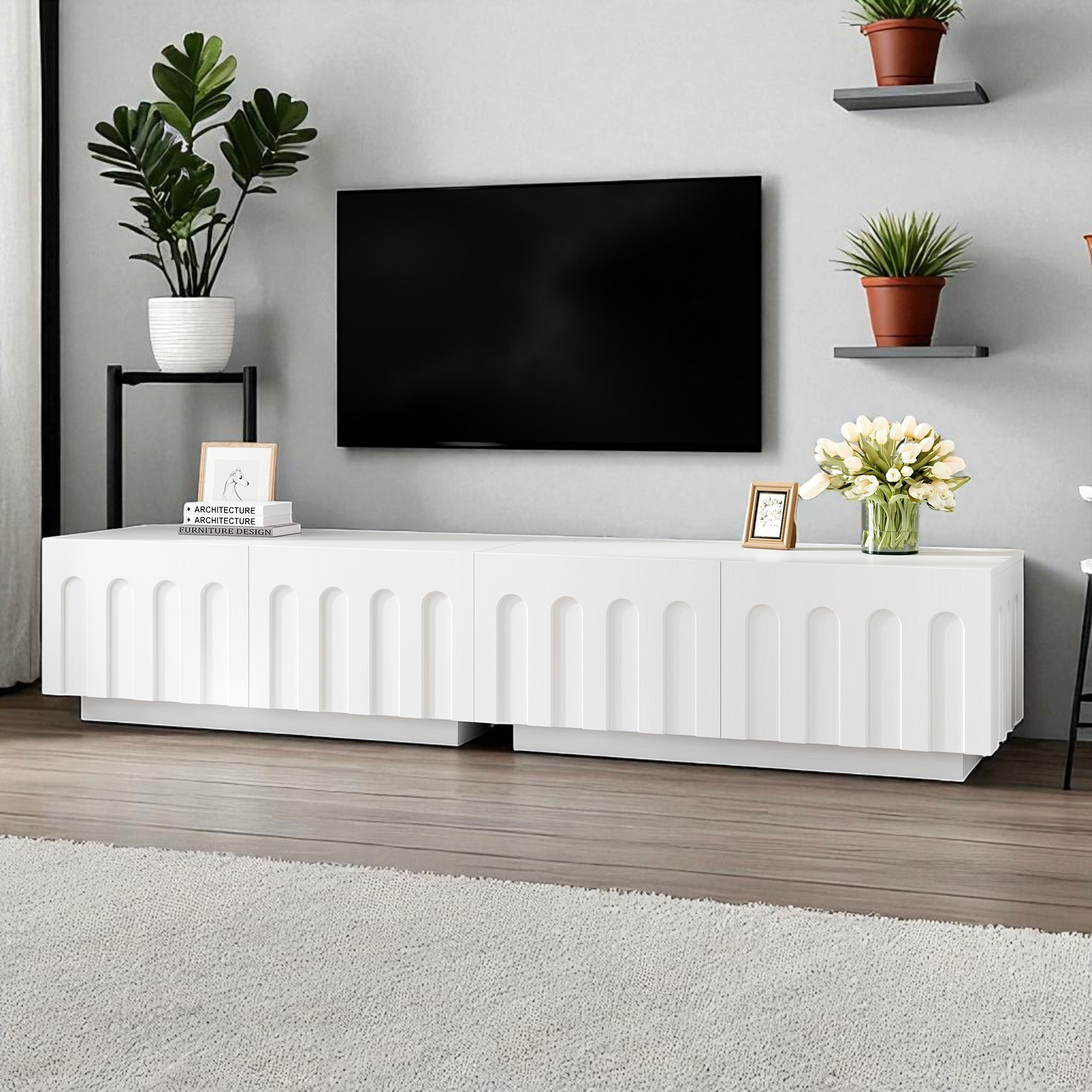 Elegant TV Stand with Arched Design for TVs Up to 80", Modern Multi-Functional Console with 4 Storage Drawers for Living Room