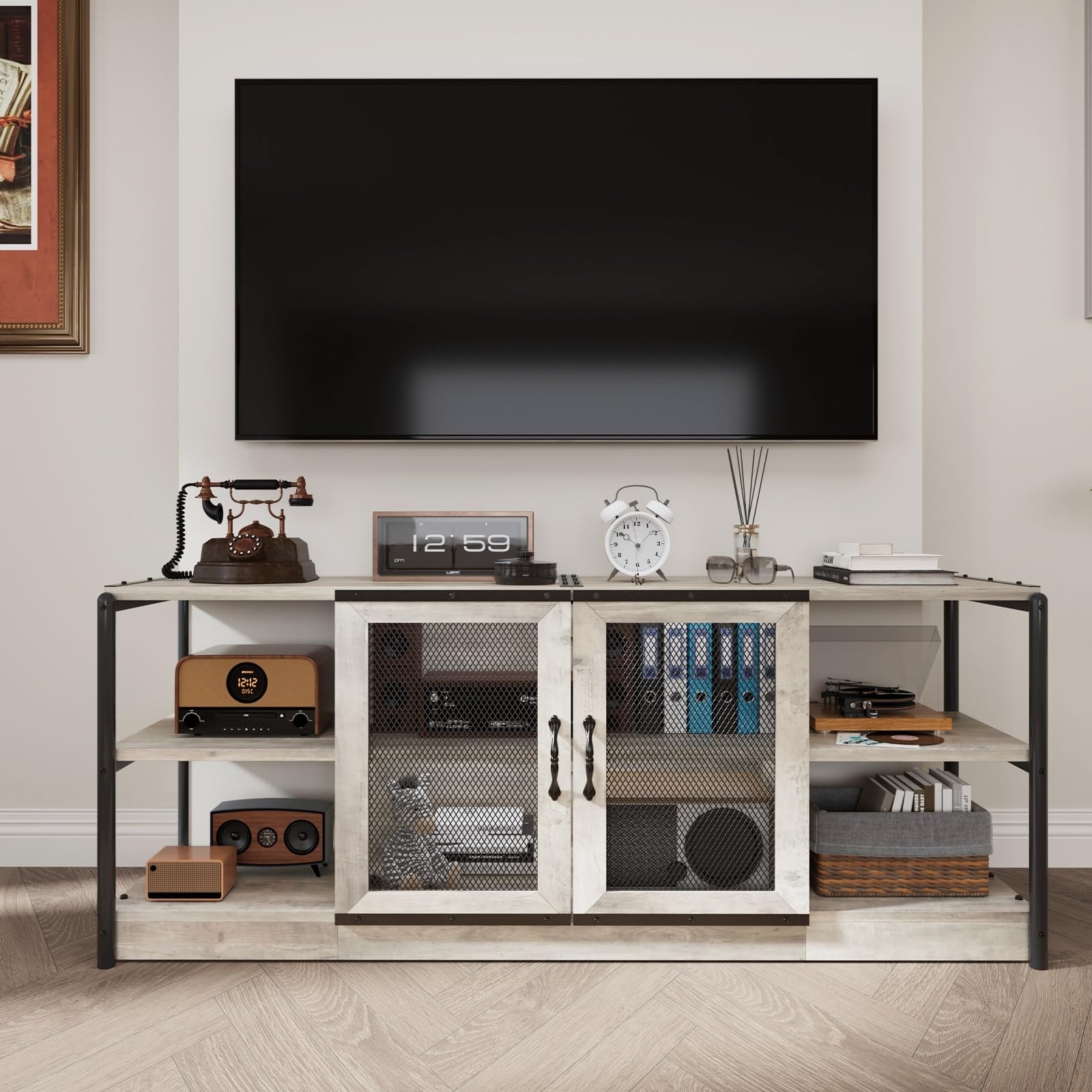 59-Inch TV Stand with Storage Cabinets, Adjustable Shelves & Cable Management for Media Center