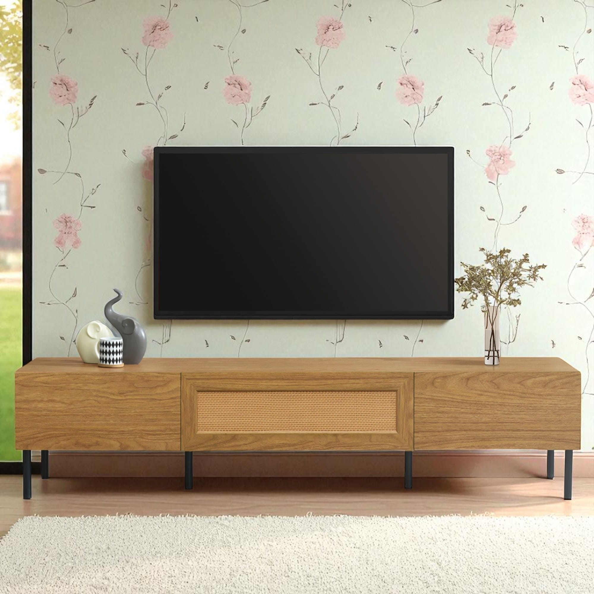 Mid-Century Modern Rattan TV Stand for 75'' TV, Entertainment Center
