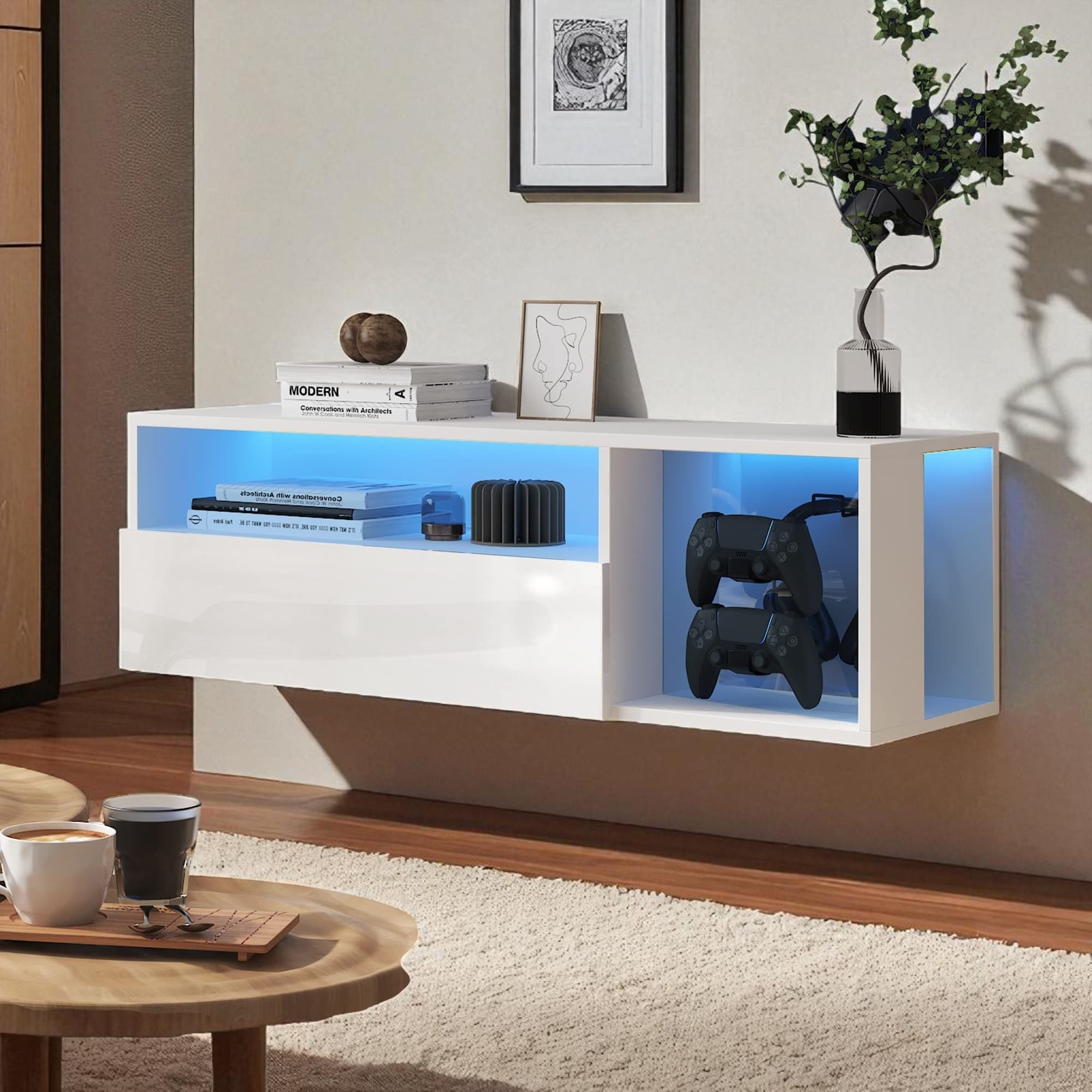 Floating TV Stand with Cabinet & Hidden Cable Management, Wall Mounted TV Shelf Entertainment Center, High Weight Capacity