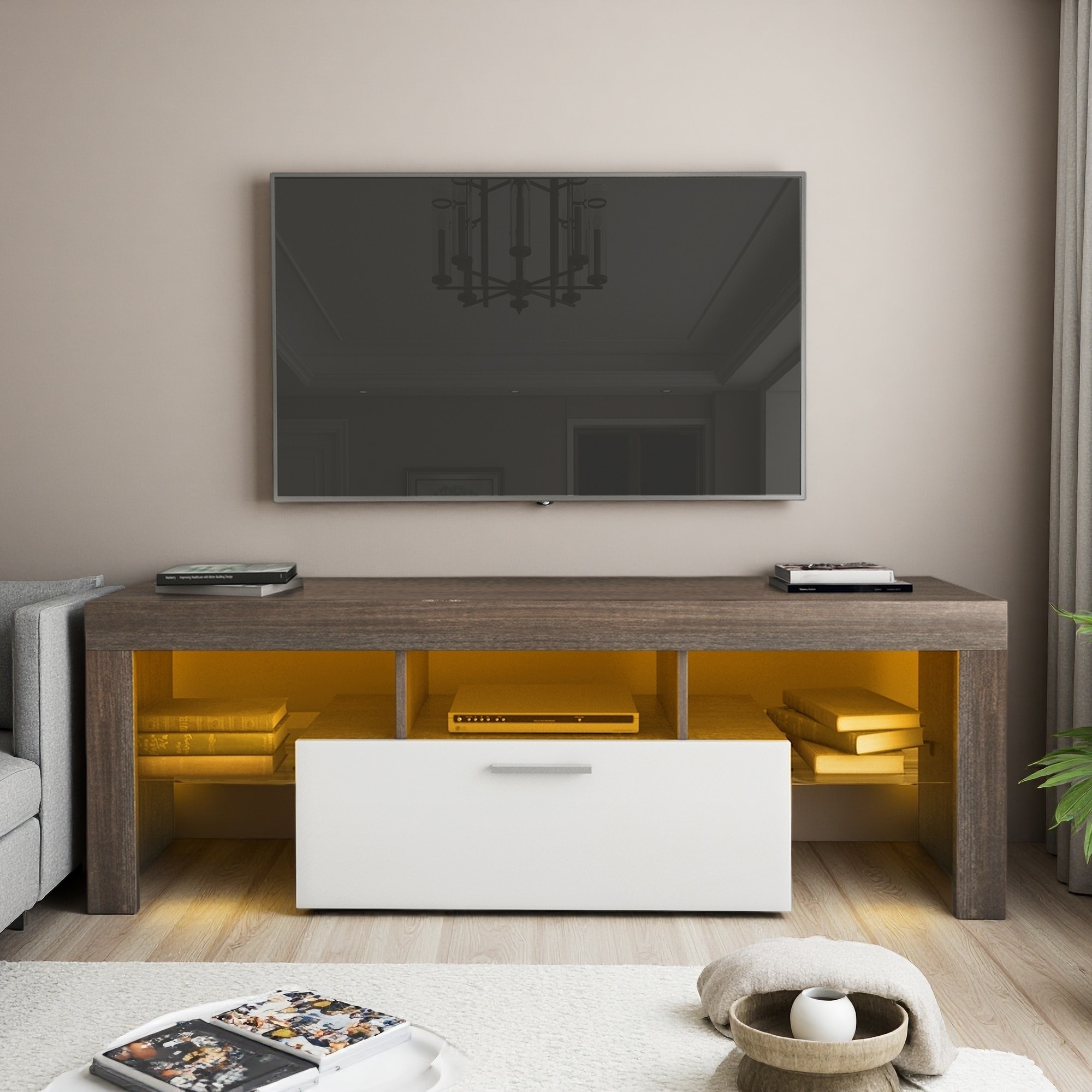 Modern TV Stand with LED Lights & Tempered Glass Shelf, Storage Cabinet Console for TVs up to 55", Floor Cabinet