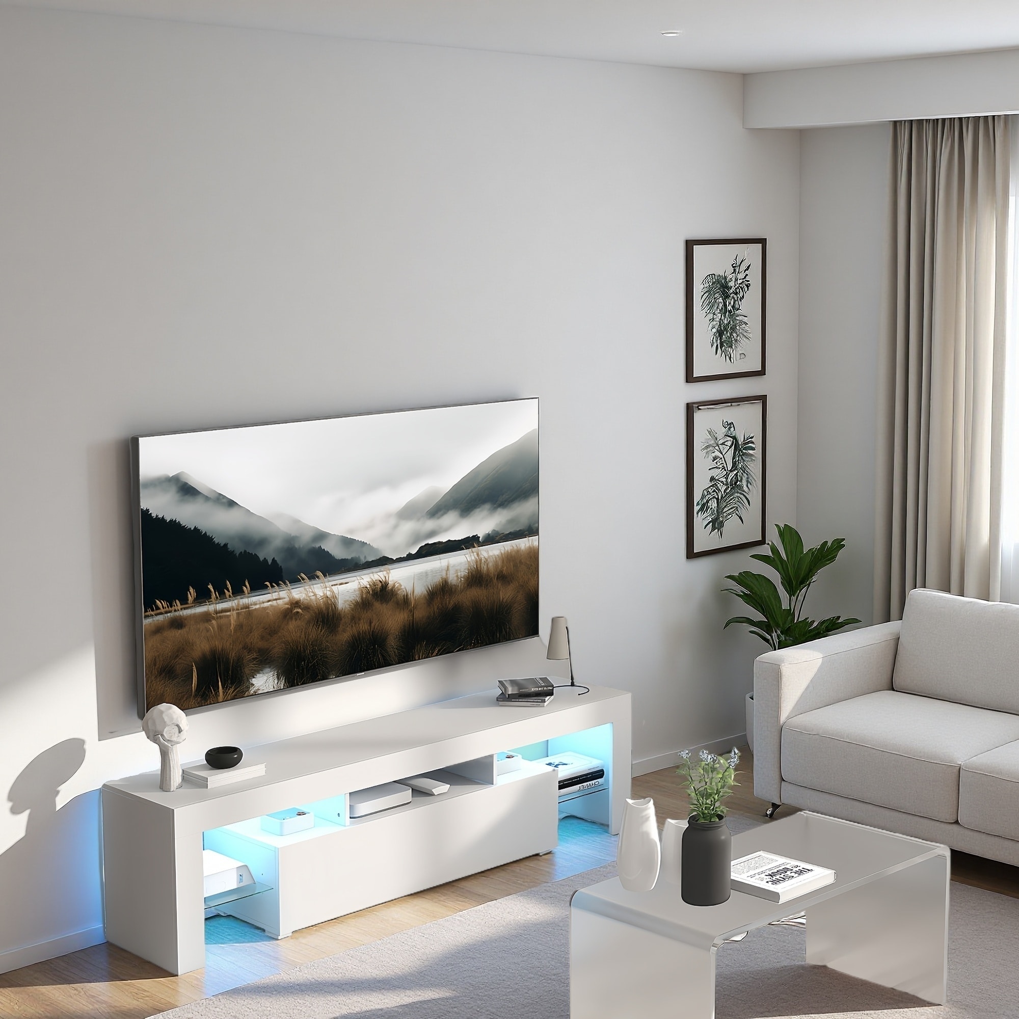 55" Modern Anwick LED TV Stand with Large Storage and Glass Shelf, Media Console Table Entertainment Center