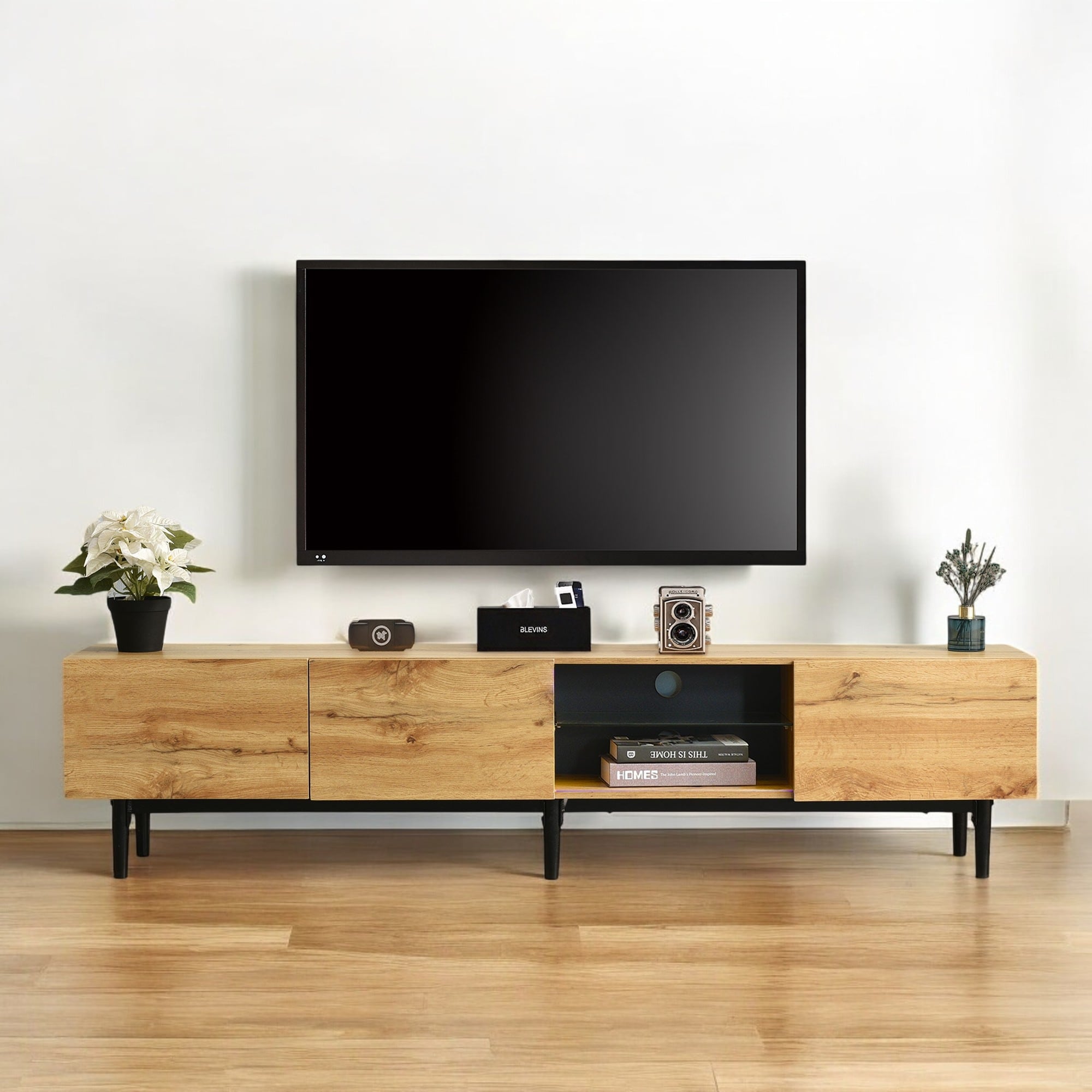 70.9" Modern TV Stand for TVs up to 80", Entertainment Center with 2 Cabinets, 2 Drawers, Open Shelf, Solid Wood Legs