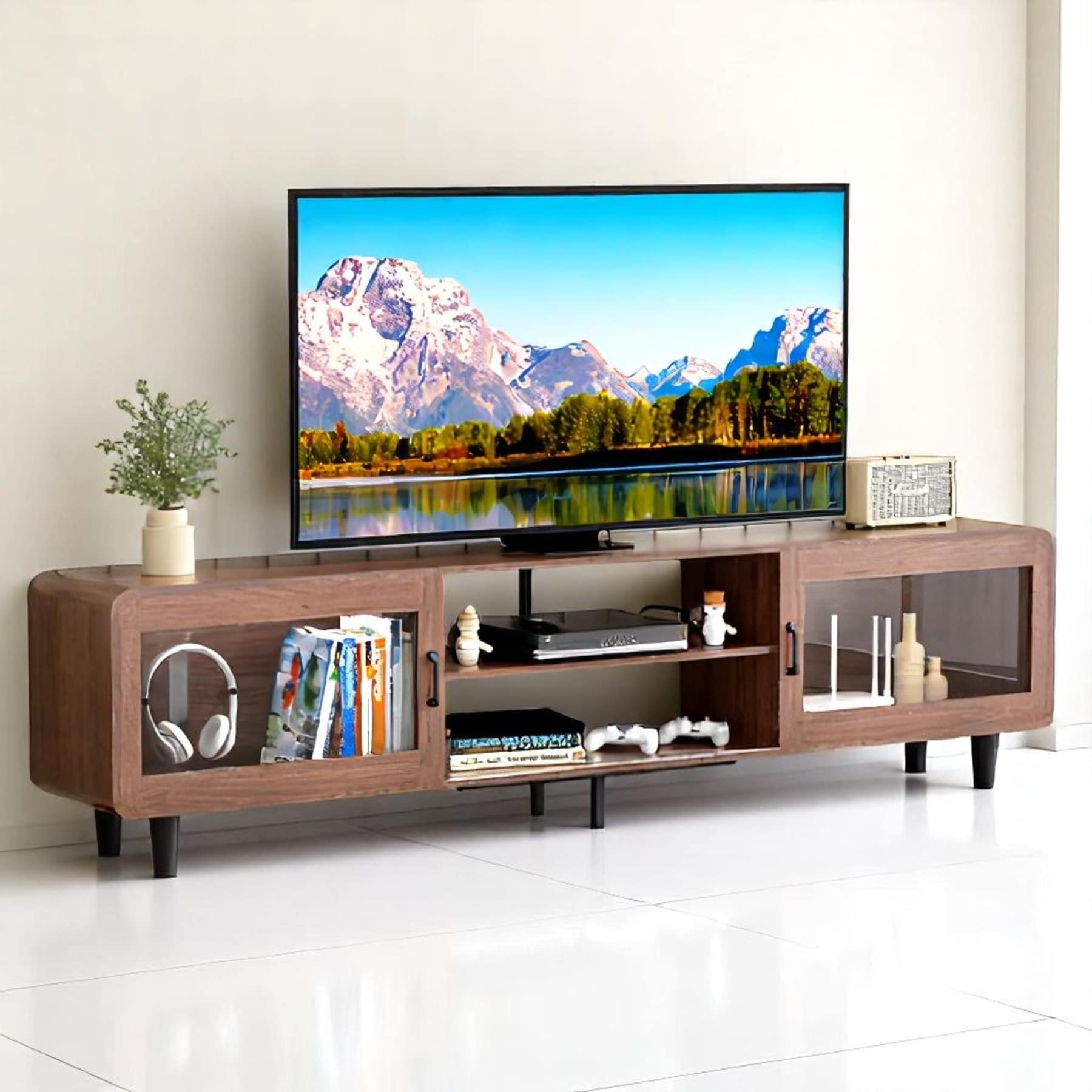 TV Stand with Solid Wood Legs