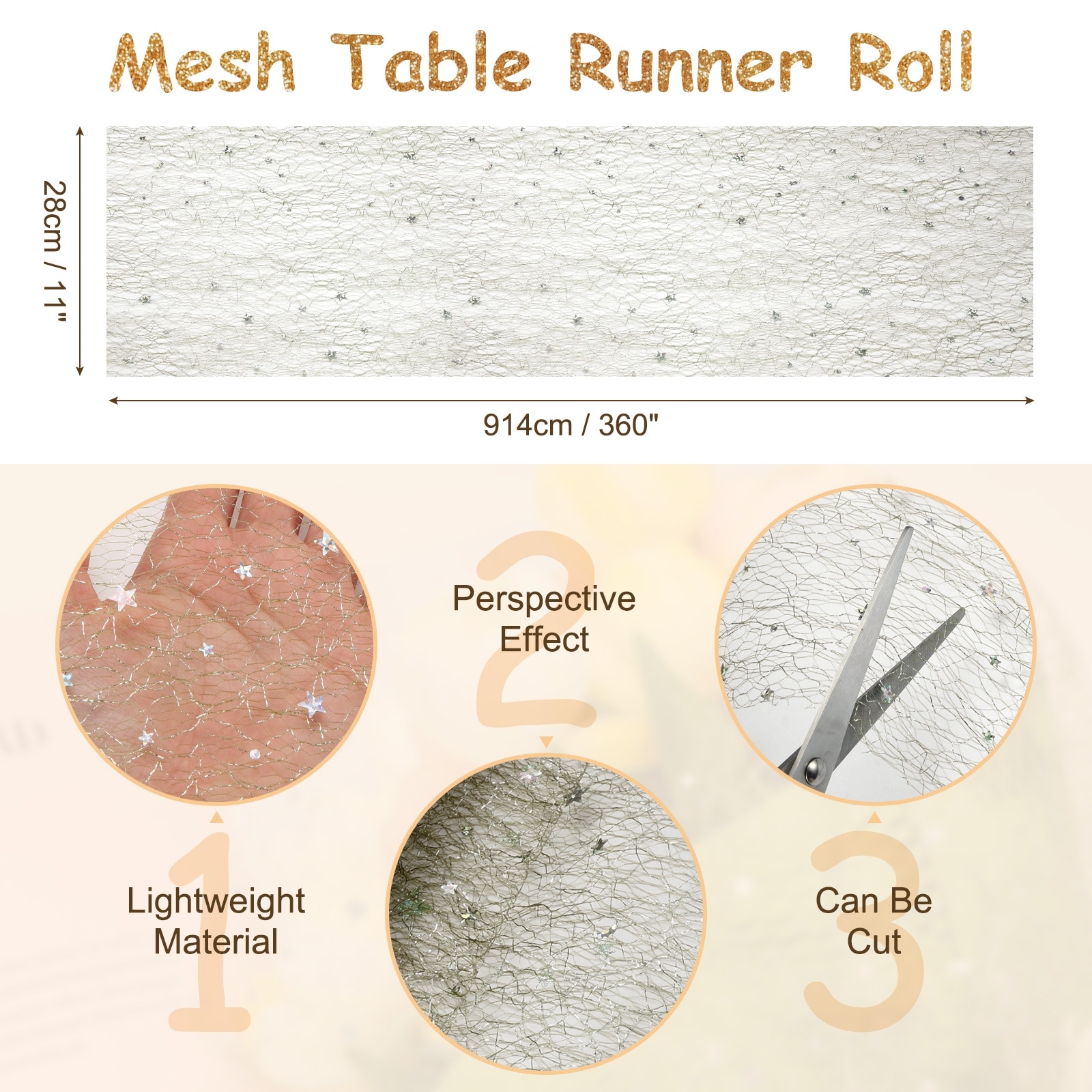 Gold Table Runner Roll, 11" x 30 Feet Sequin Foil Metallic Table Runner