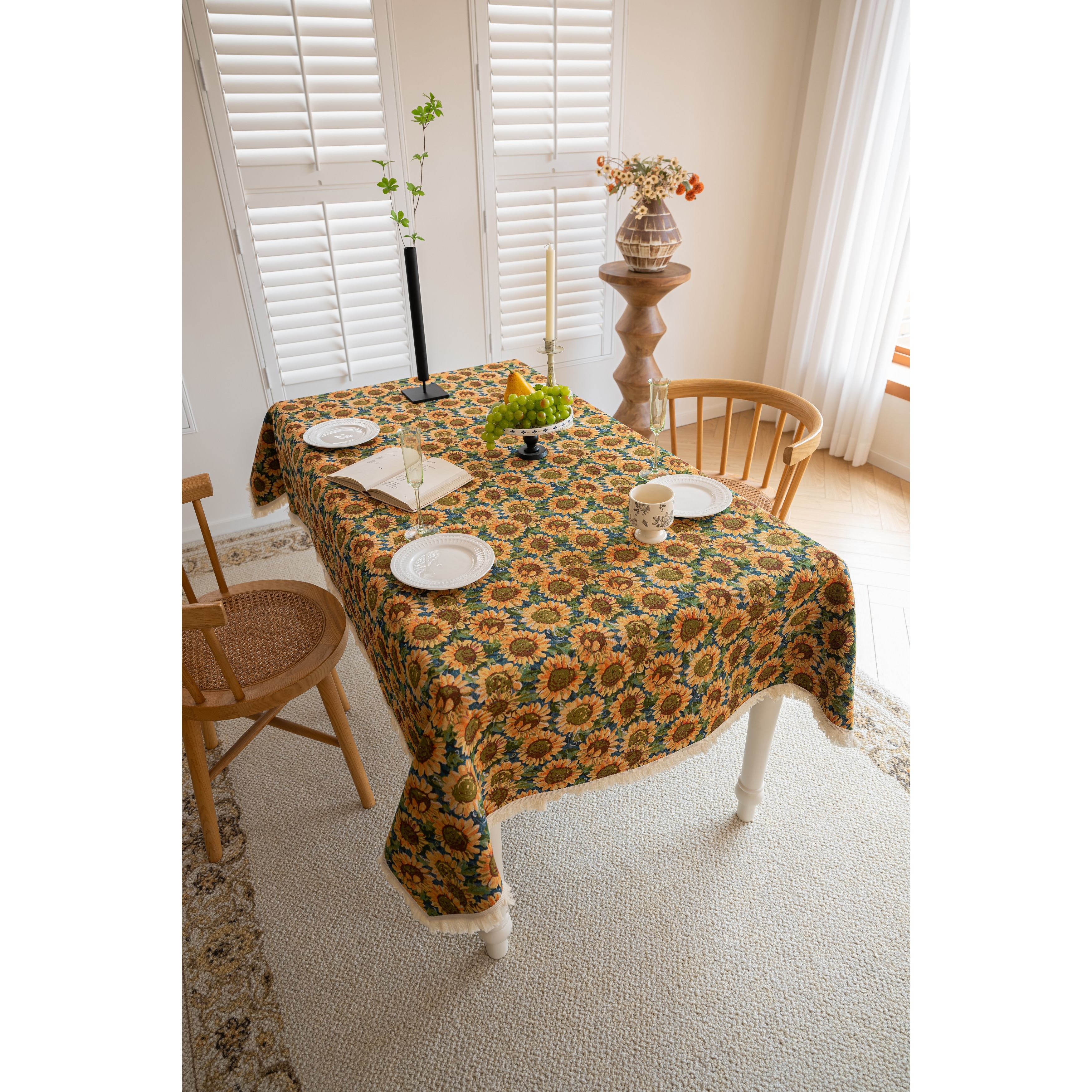 Cotton Linen Table Cloth for Dining Table Farmhouse Kitchen Sunflowers