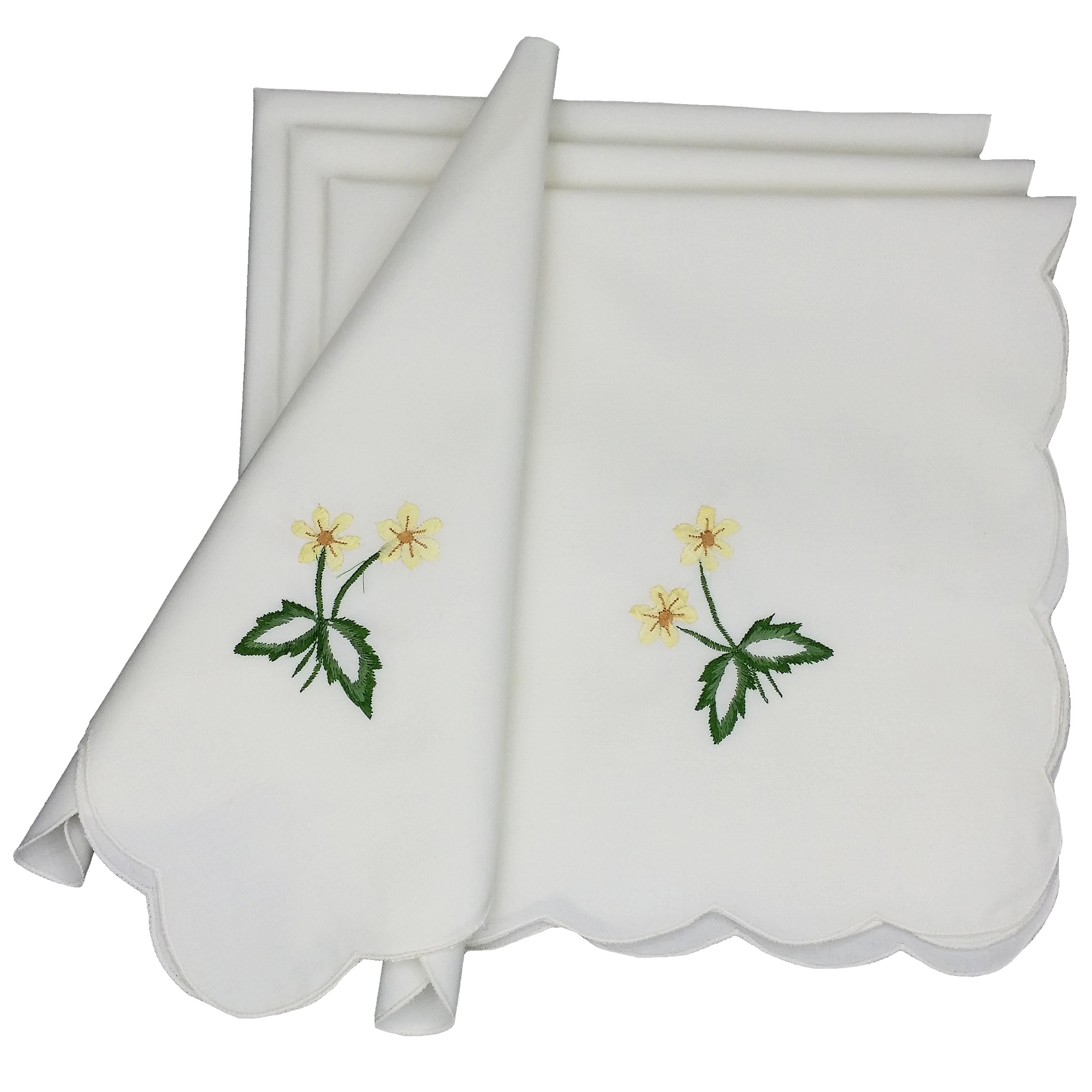 Cute Leaves Crewel Embroidered Napkins 20"x20", Pine Green, Set of 4