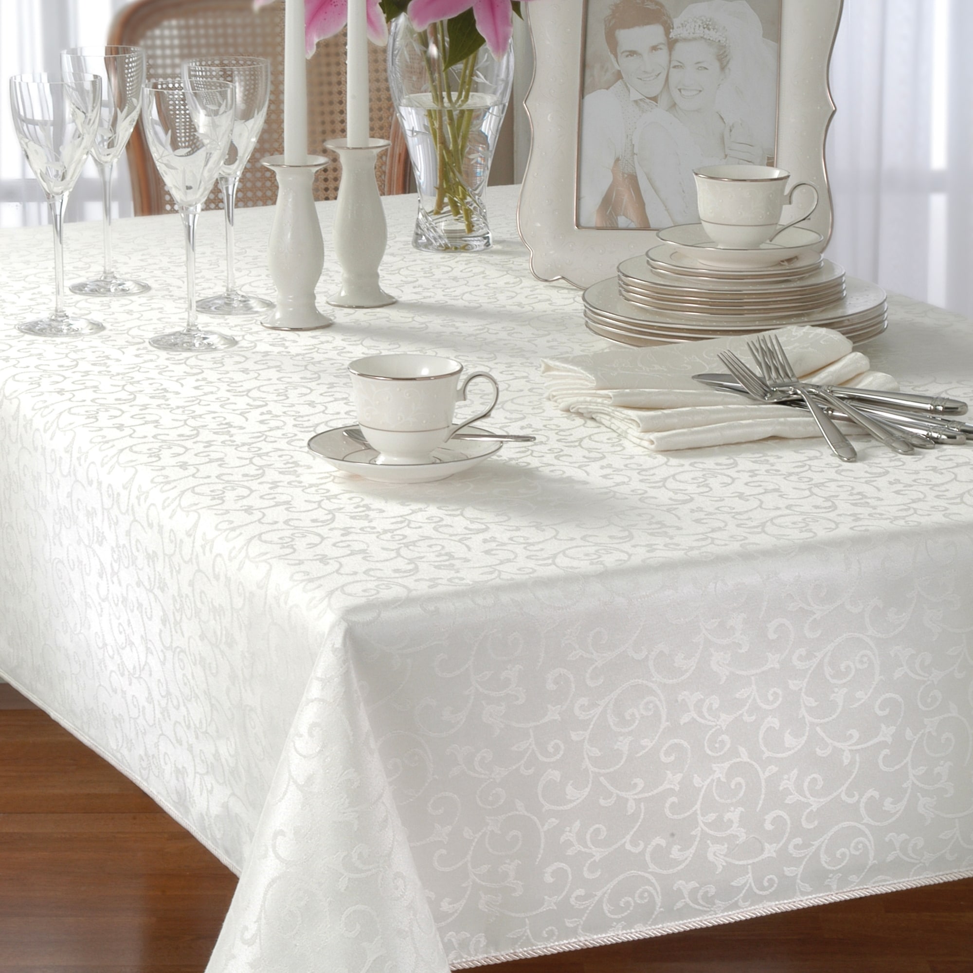Wipeable Stain Resistant French Floral Croix Jacquard Tablecloth