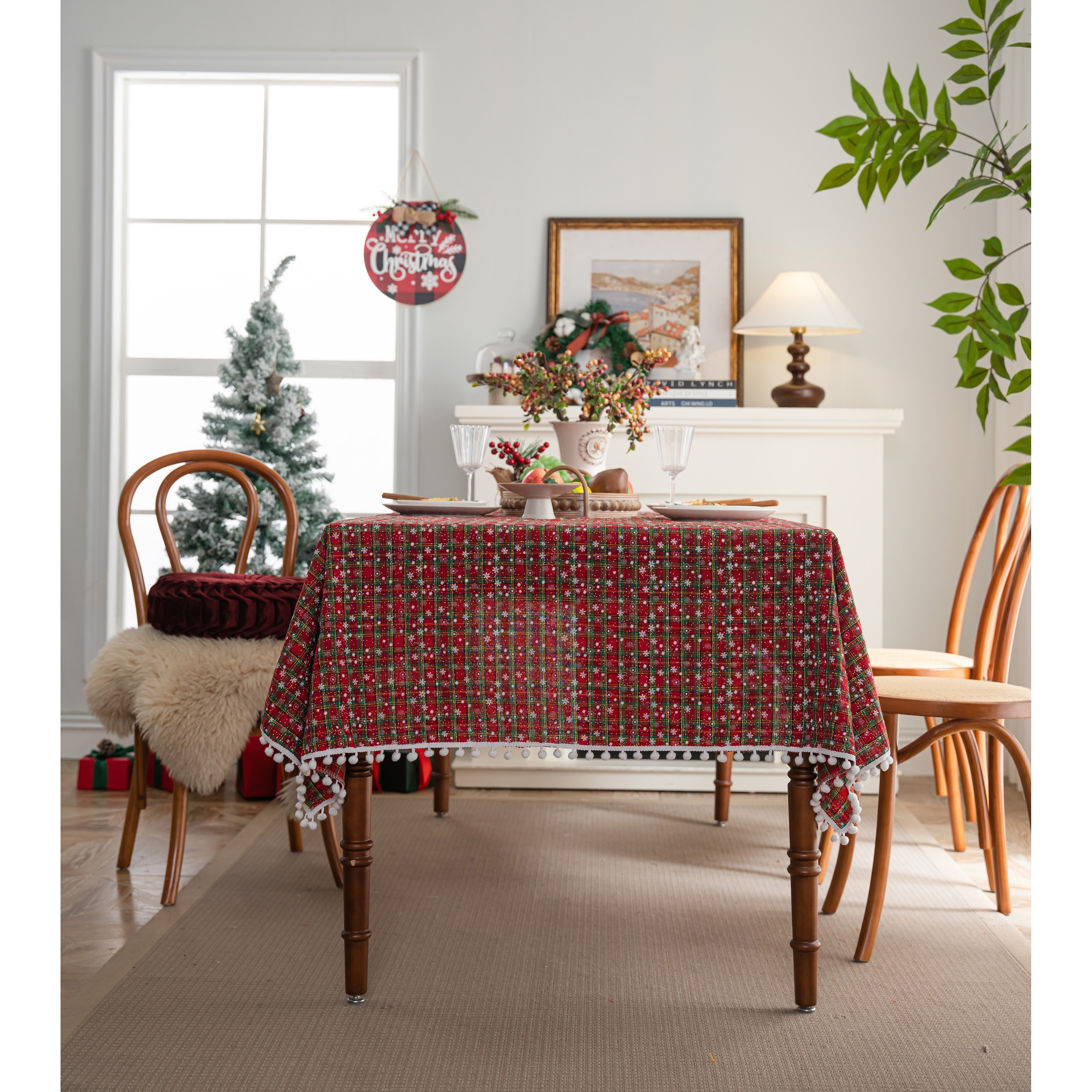 Cotton Linen Table Cloth Farmhouse Dining Tables Cover, Soft Fabric Table Cloths with Tassels,Red