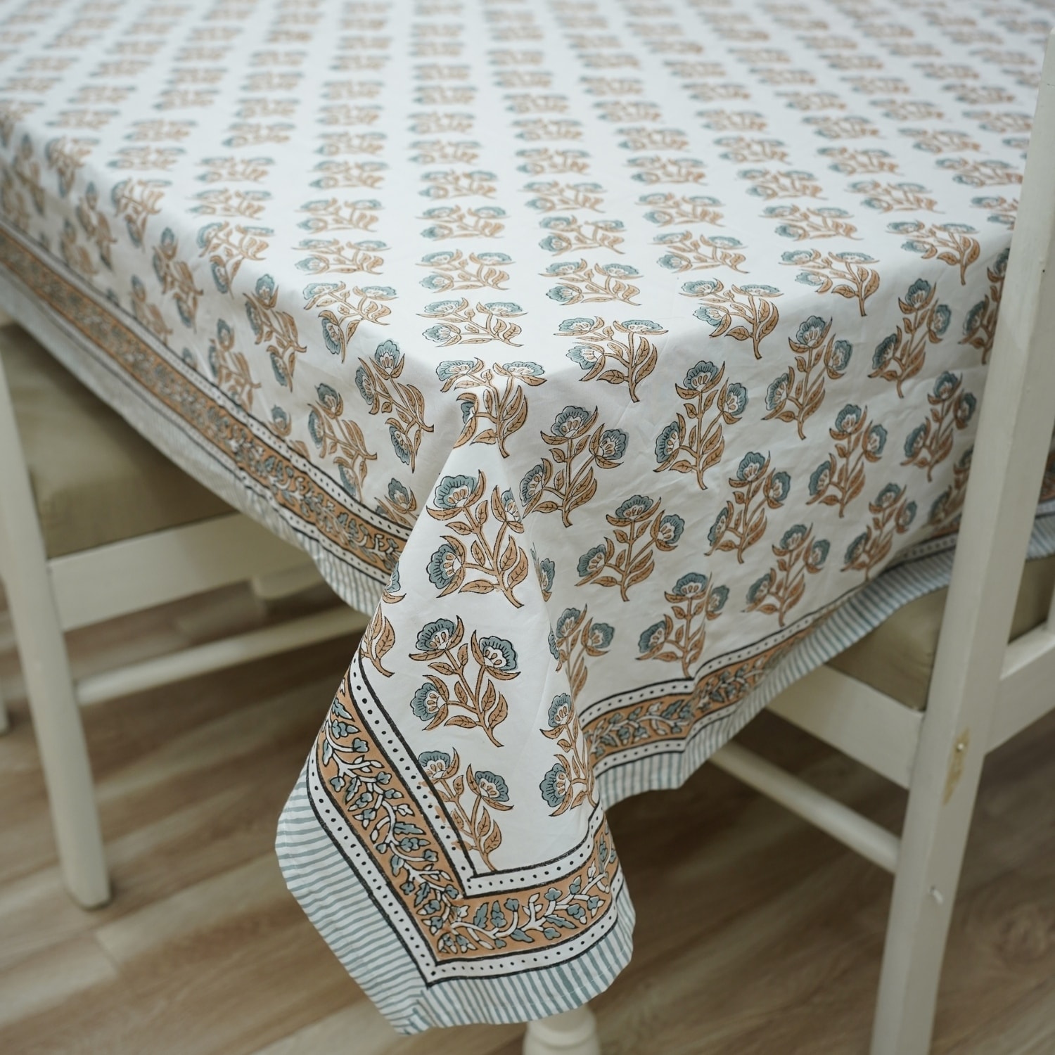 Fabdivine Handmade Block Print Cotton Table Cover Farmhouse Dining Kitchen Decor Gift