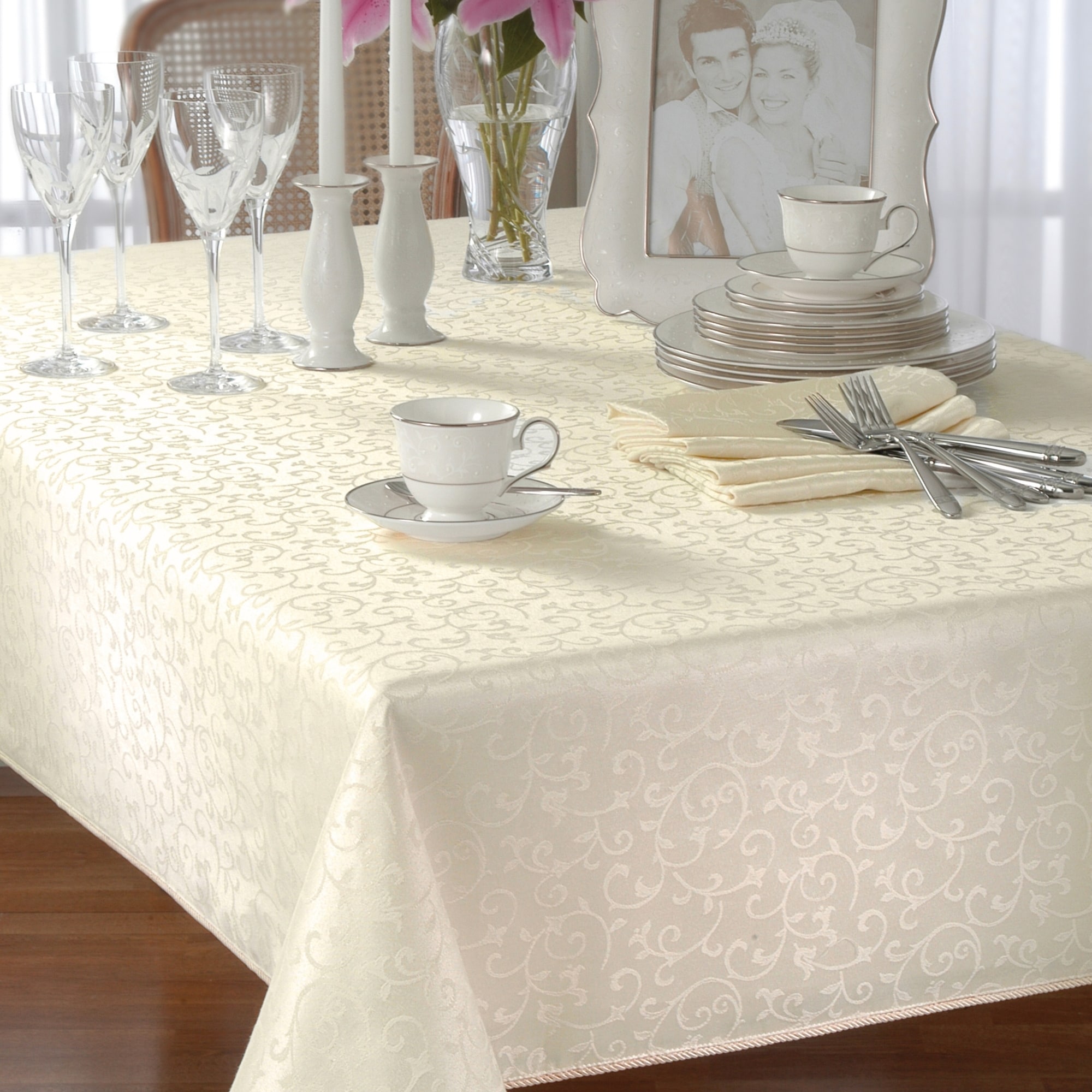 Wipeable Spill Resistant French Floral Acrylic Coated Vanne Tablecloth