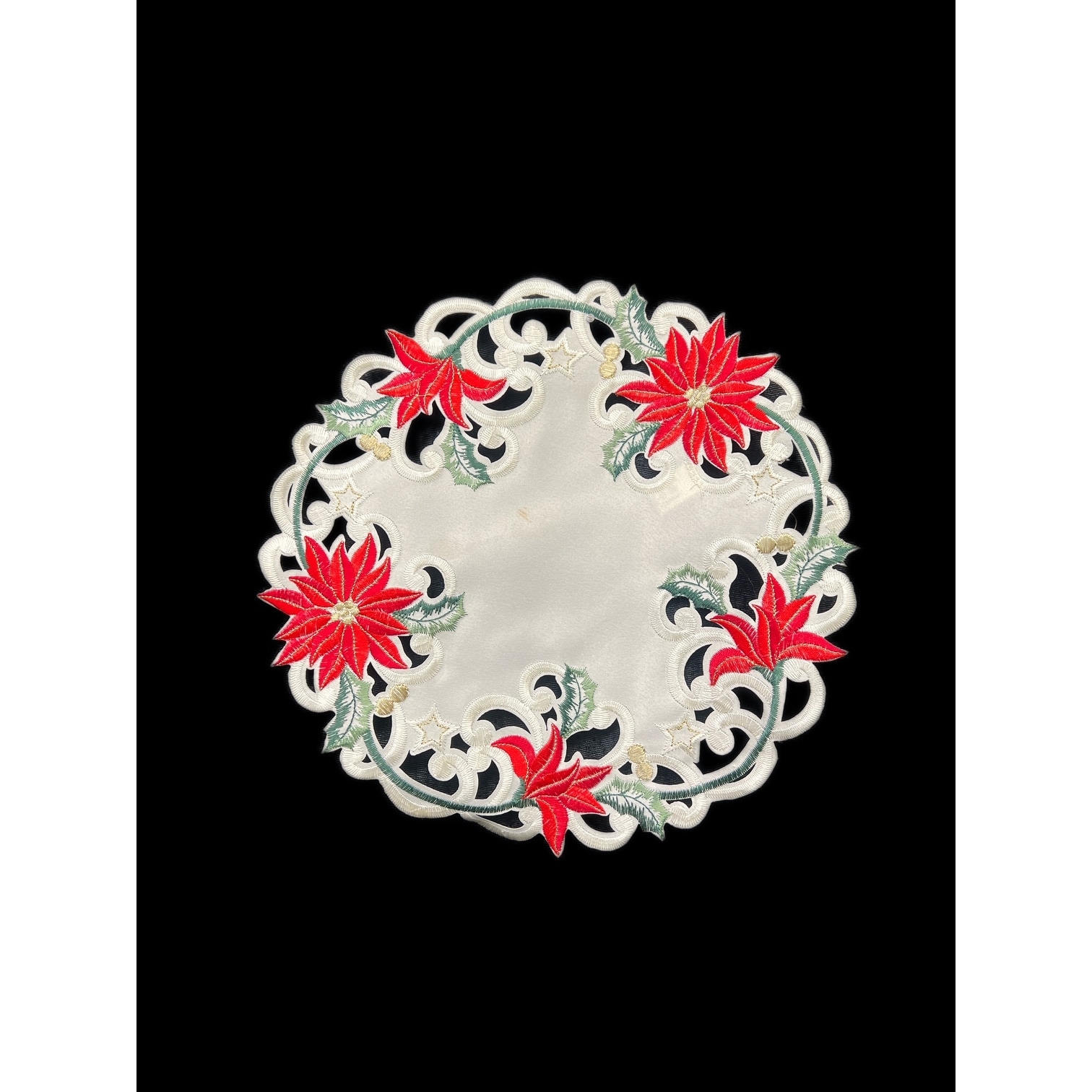 Christmas Poinsettia Embroidered Cutwork Round Placemat, 12" dia.
