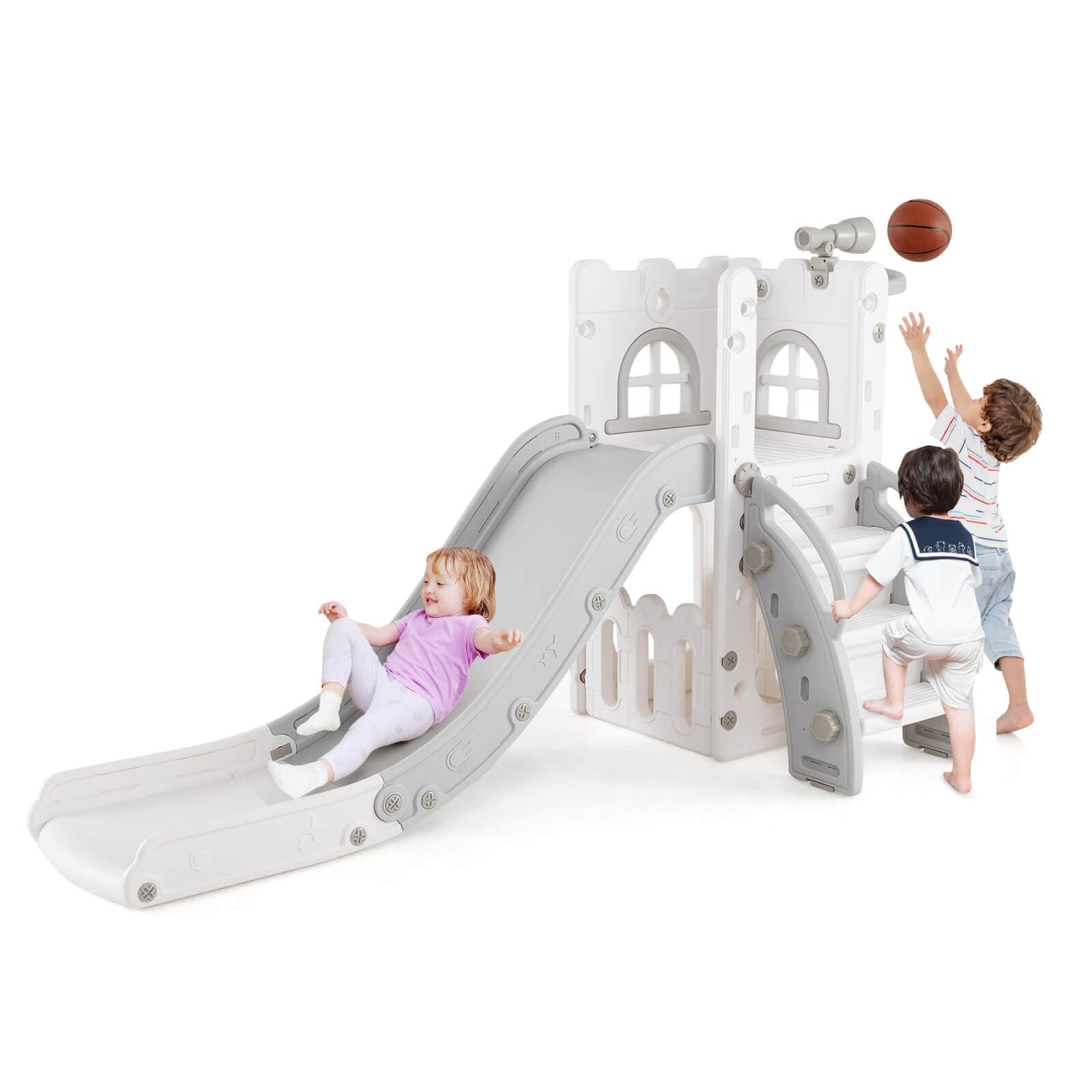 6-in-1 Indoor Toddler Slide Playset w/Basketball Hoop Telescope & More