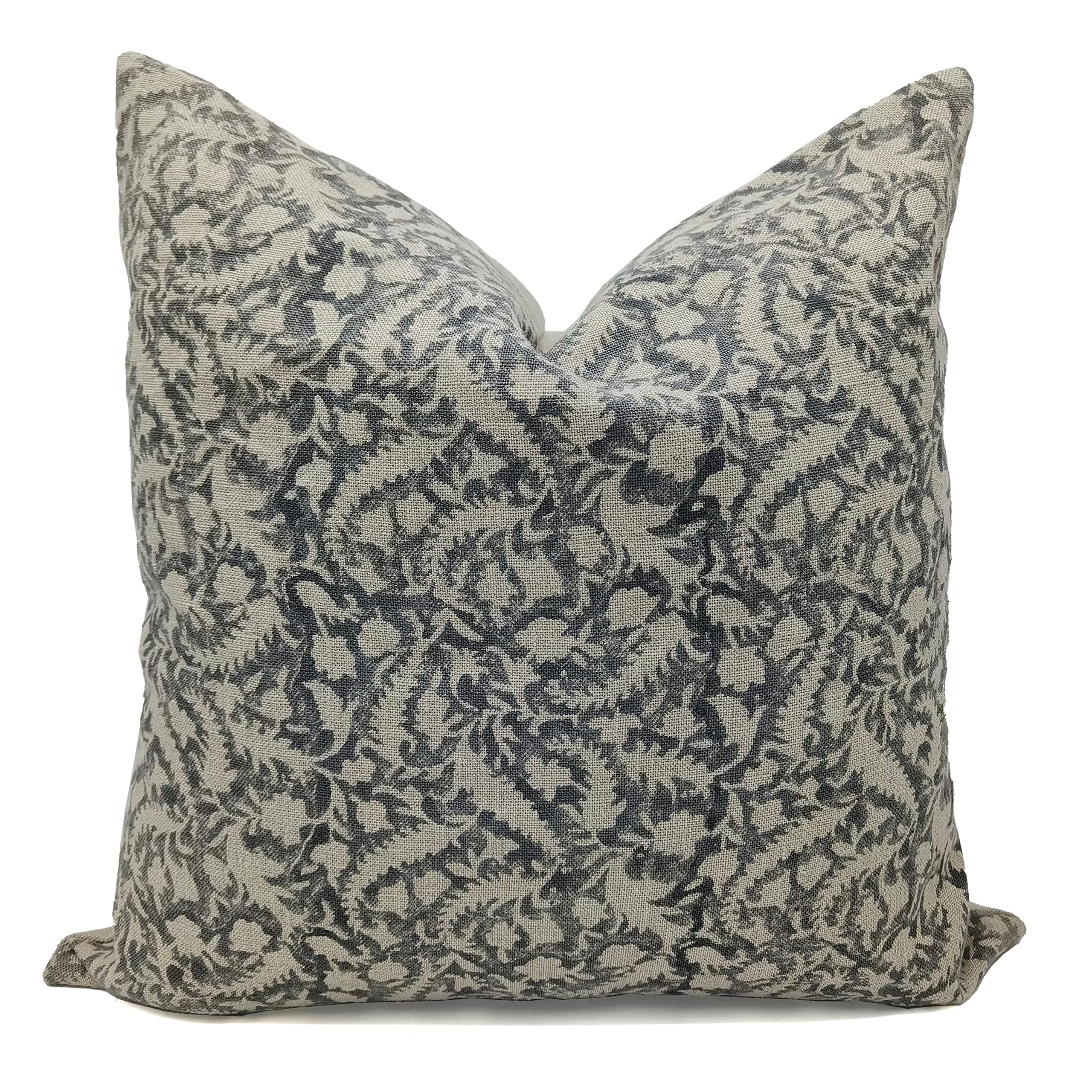 Fabdivine Thick Handmade Linen Block Print Pillow Cover Boho Floral Accent, Black Forest