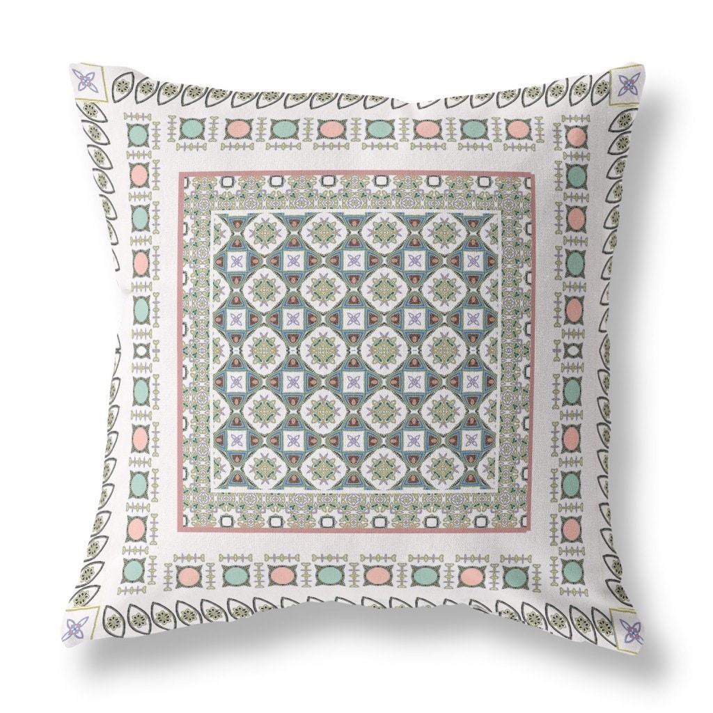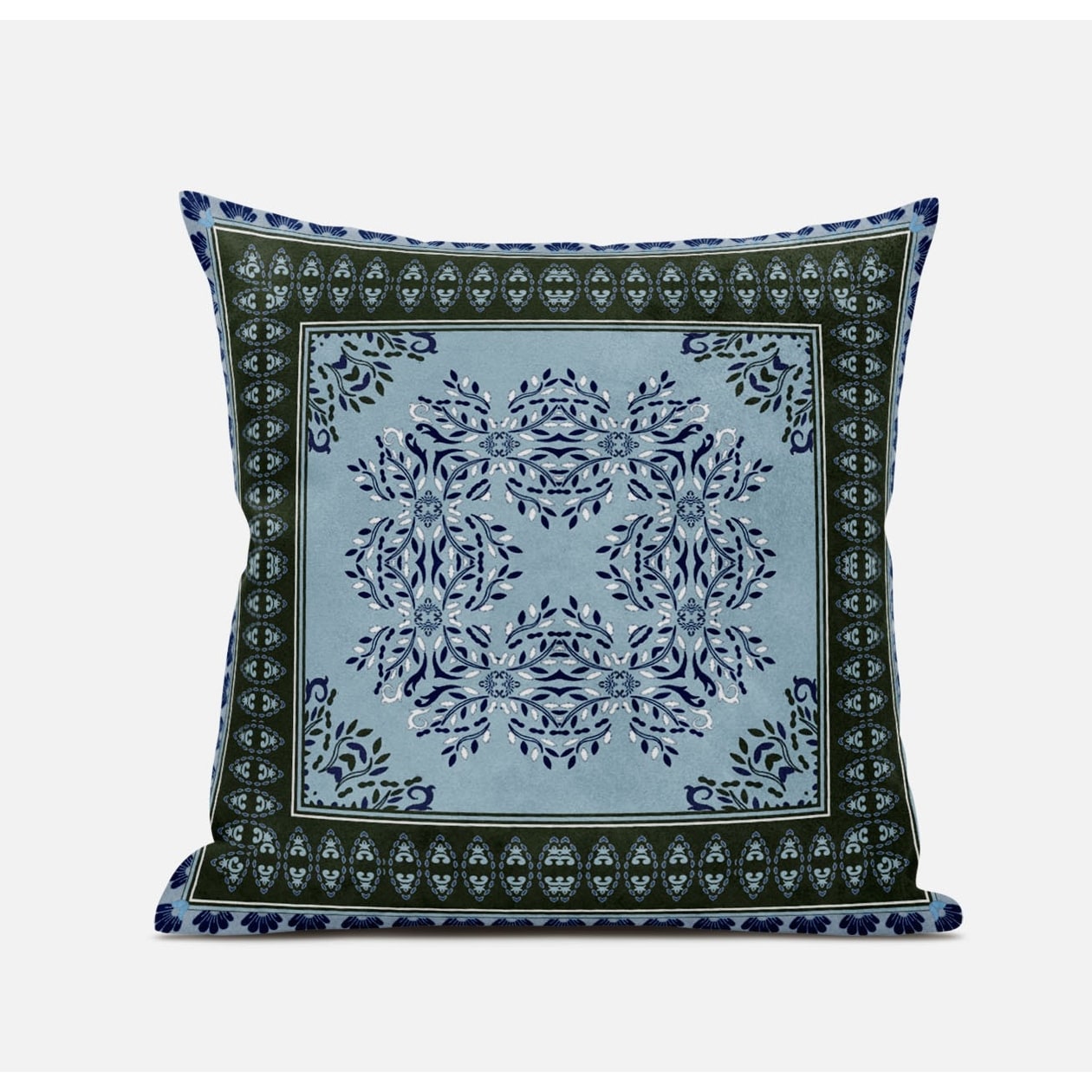 16" X 16" Dark Green Light Blue Geometric Blown Seam Suede Throw Pillow