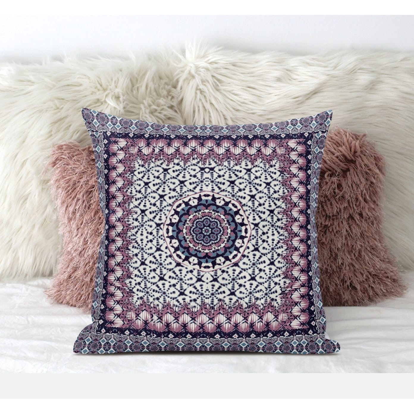 16" X 16" Gray And Pink Blown Seam Floral Indoor Outdoor Throw Pillow