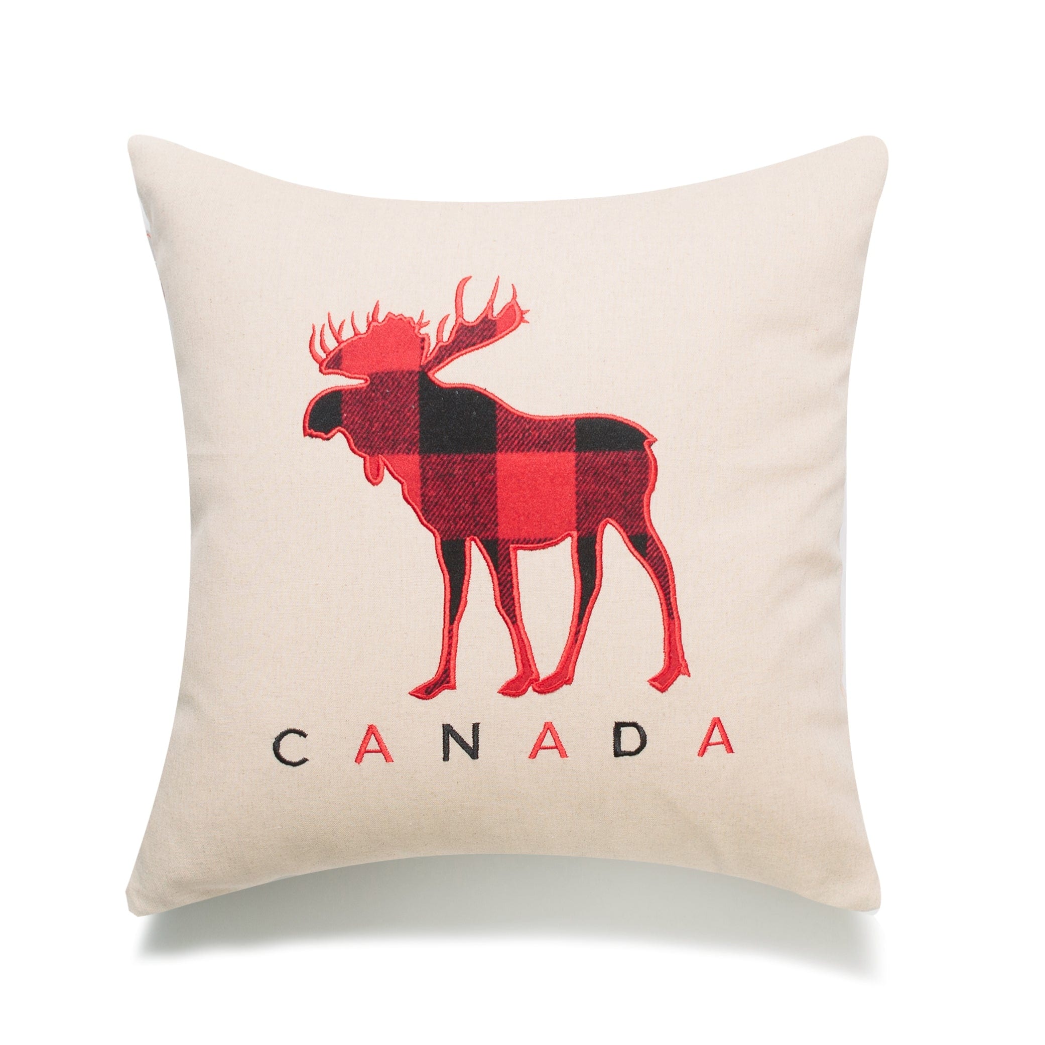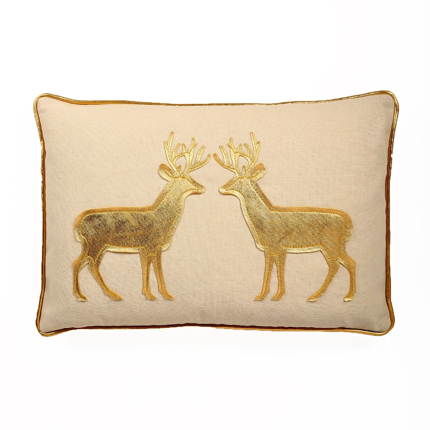 Gold With Two Reindeers Applique And Polyester Insert Pillow