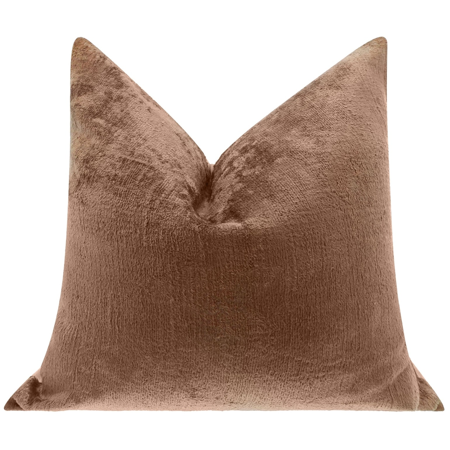 Solid Brown Silk Velvet Throw Pillow - 20x20 with Insert - 20" x 20"