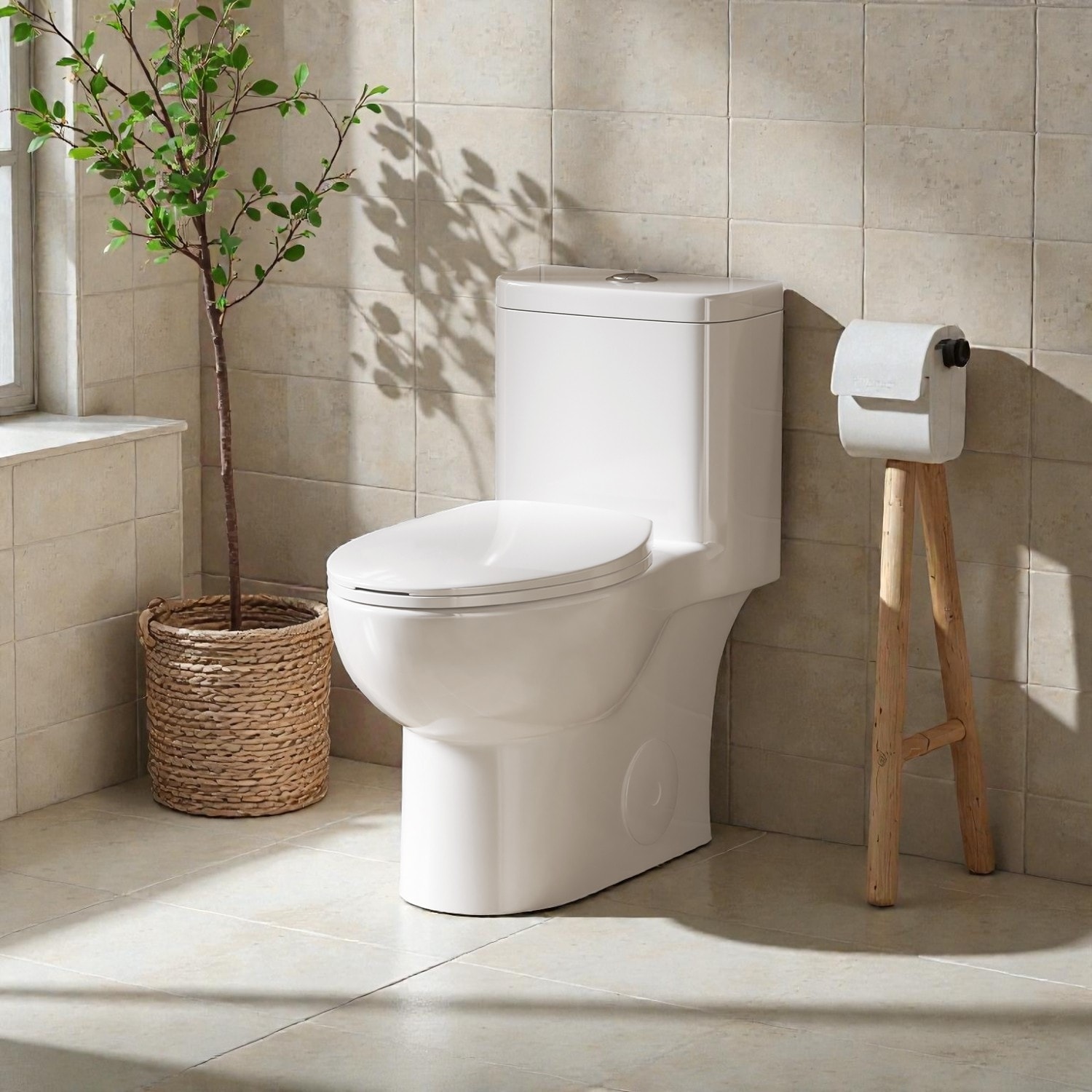 Ceramic One Piece Toilet,Single Flush with Soft Clsoing Seat