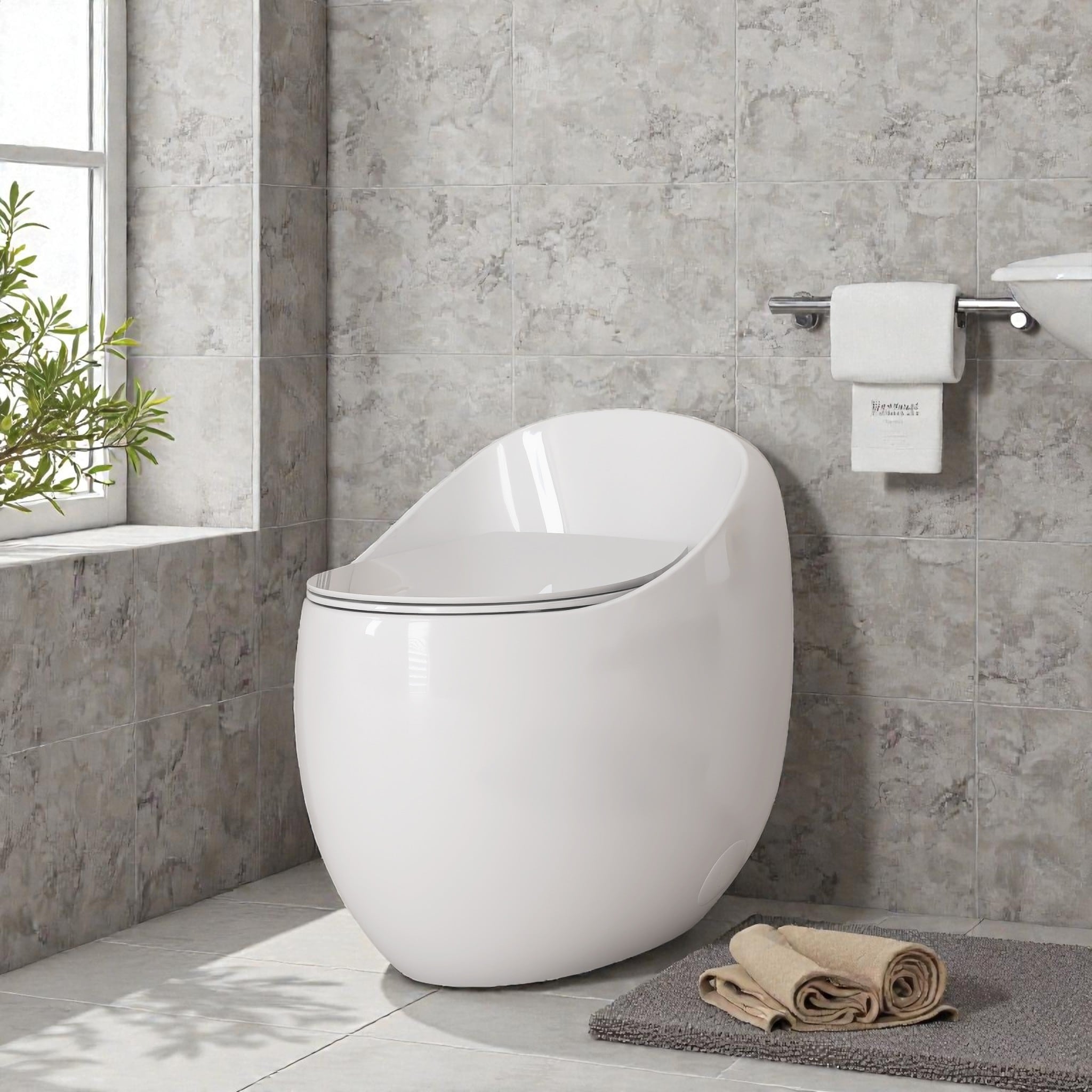 One Piece Egg Shape Toilet 1.28 GPF Single Flush. Soft Close Seat. Quick Release. Modern Bathroom Design