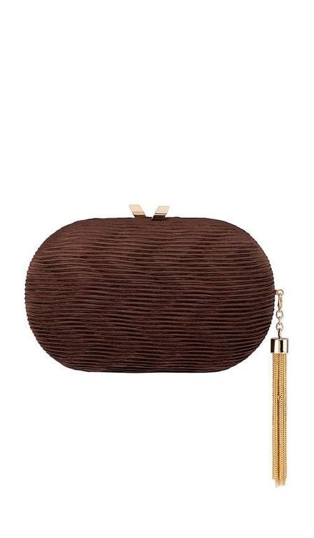 Natalie Pleated Oval Clutch - Brown - Olga Berg Clutches