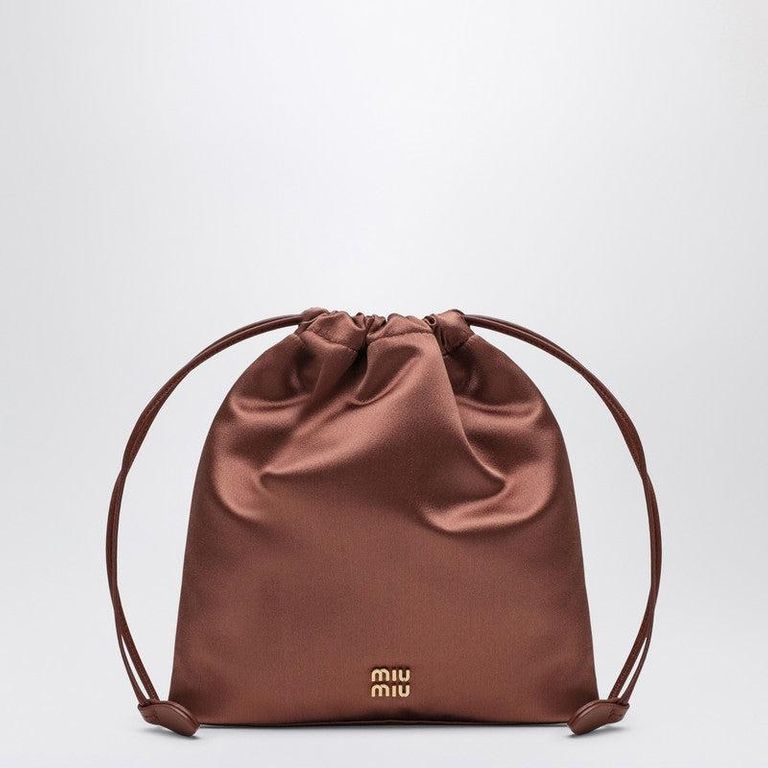 Cocoa-Coloured Satin Pouch - Brown - Miu Miu Clutches