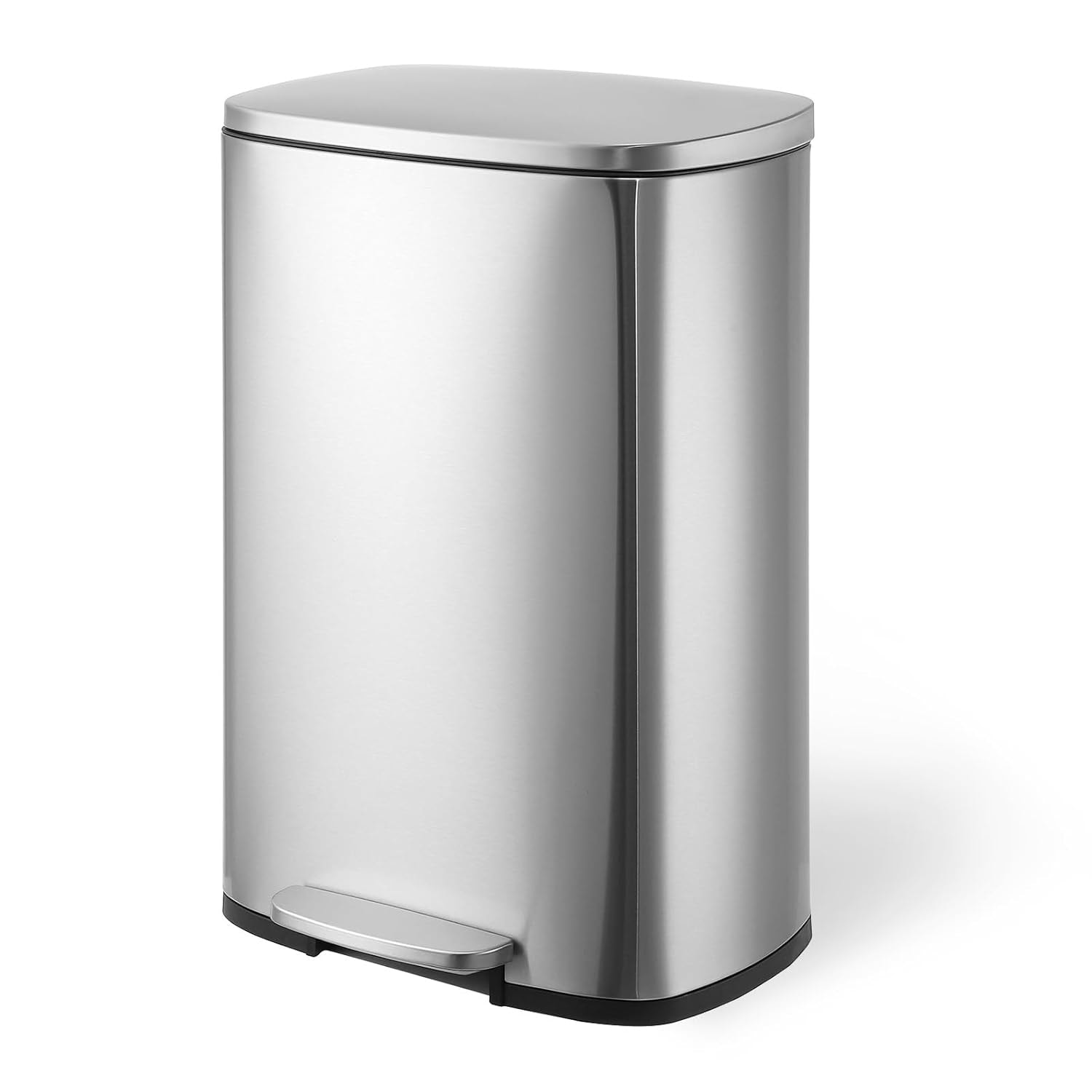 13 Gal Stainless Steel Step Trash Can, Rectangular Waste Bin with Soft-Close Lid for Home or Office