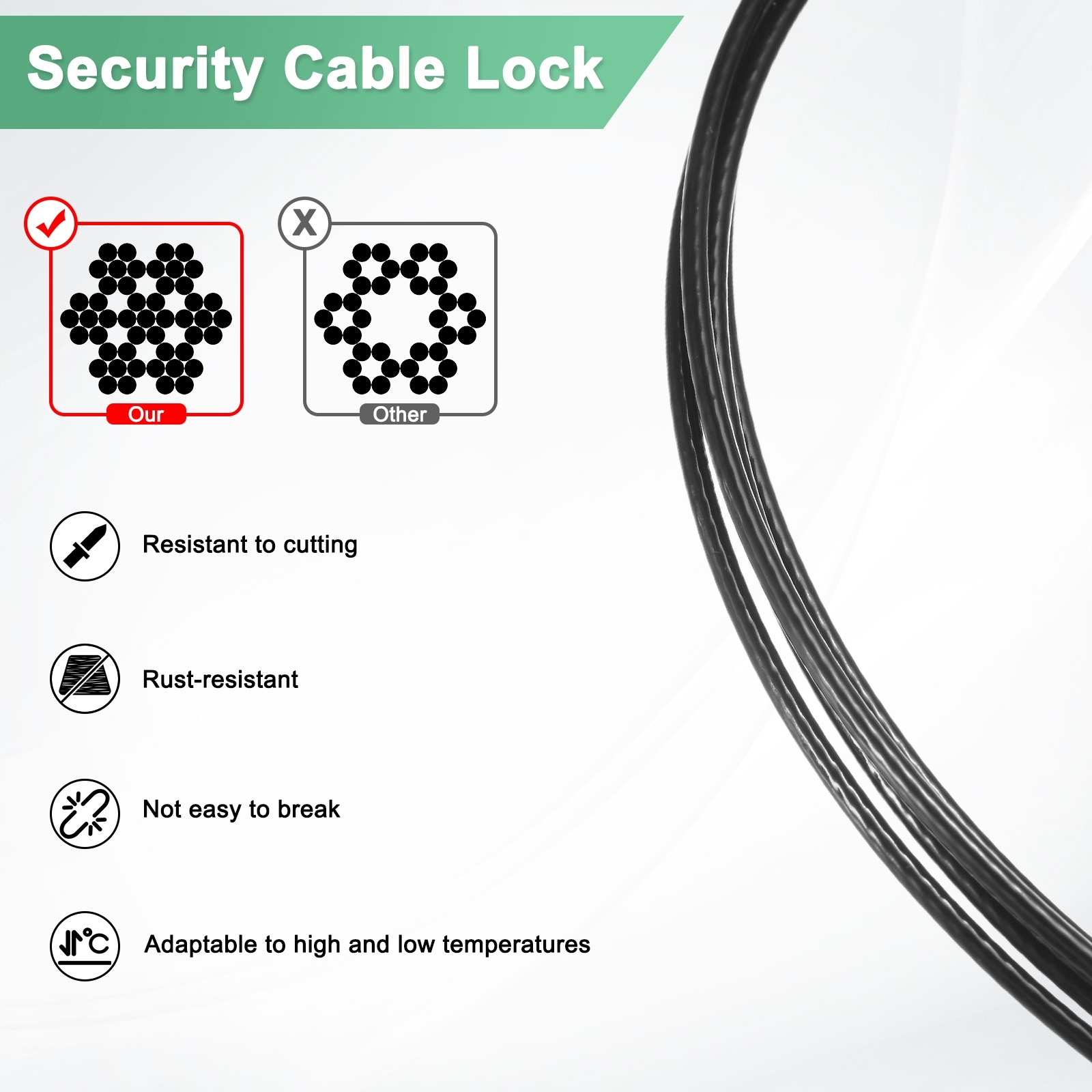 Security Cable Lock, PVC Coated Stainless Steel Luggage Lock Wire Rope Double Loop Cut-Resistant Braided Steel Cable