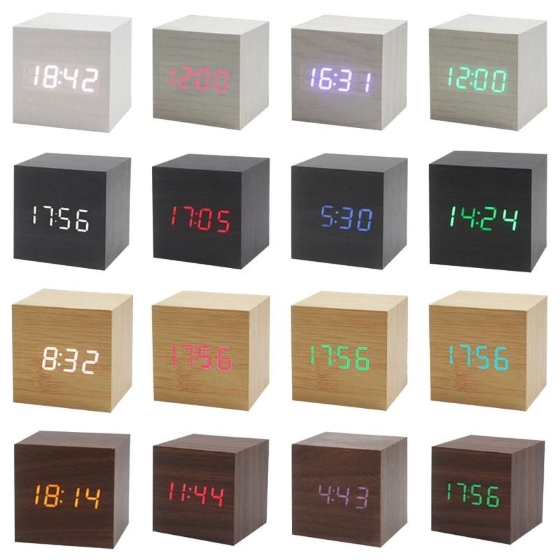 Minimalist Wooden LED Alarm Clock Sound Activated Display With Temperature For Bedroom Or Office Decor bamboo