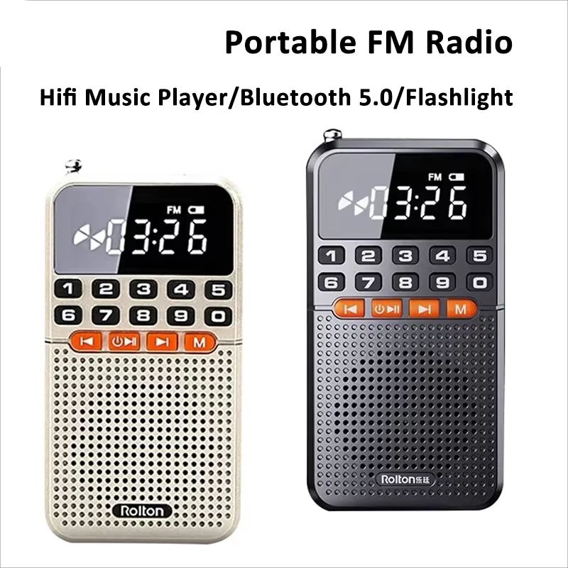 Mini Bluetooth Pocket Radio Portable FM Receiver & Music Player With Flashlight golden