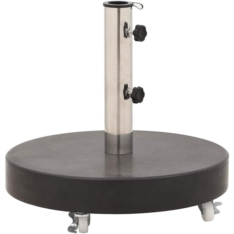 Round Umbrella Base with Wheels for 1.5-inch/1.9-inch Pole, Granite Plate, Stainless Steel Pipe, Black