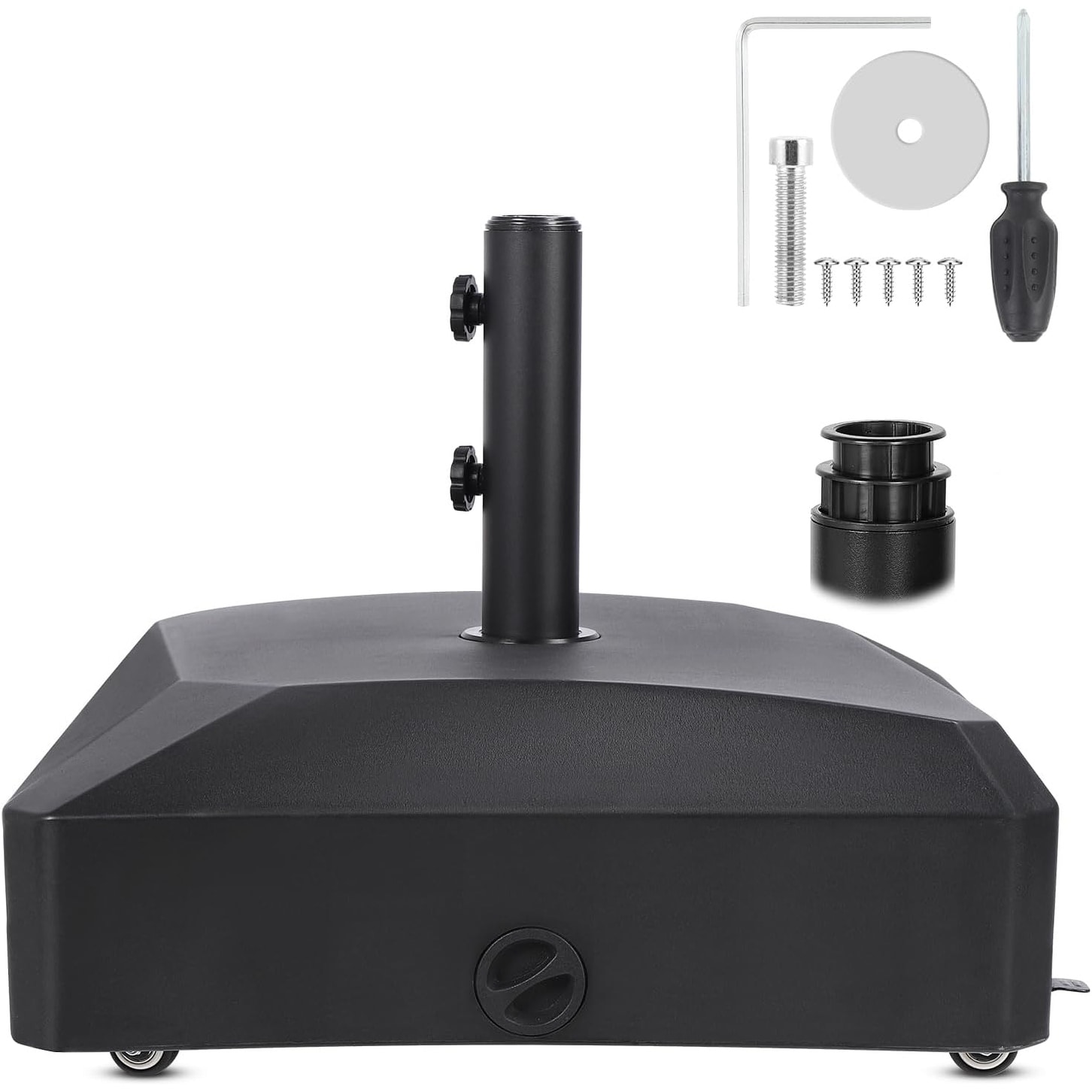 Heavy Duty Square Patio Umbrella Base with Wheels, 81 lb Water Capacity, 2 Locks 2 Knobs, for Outdoor, Deck, Poolside