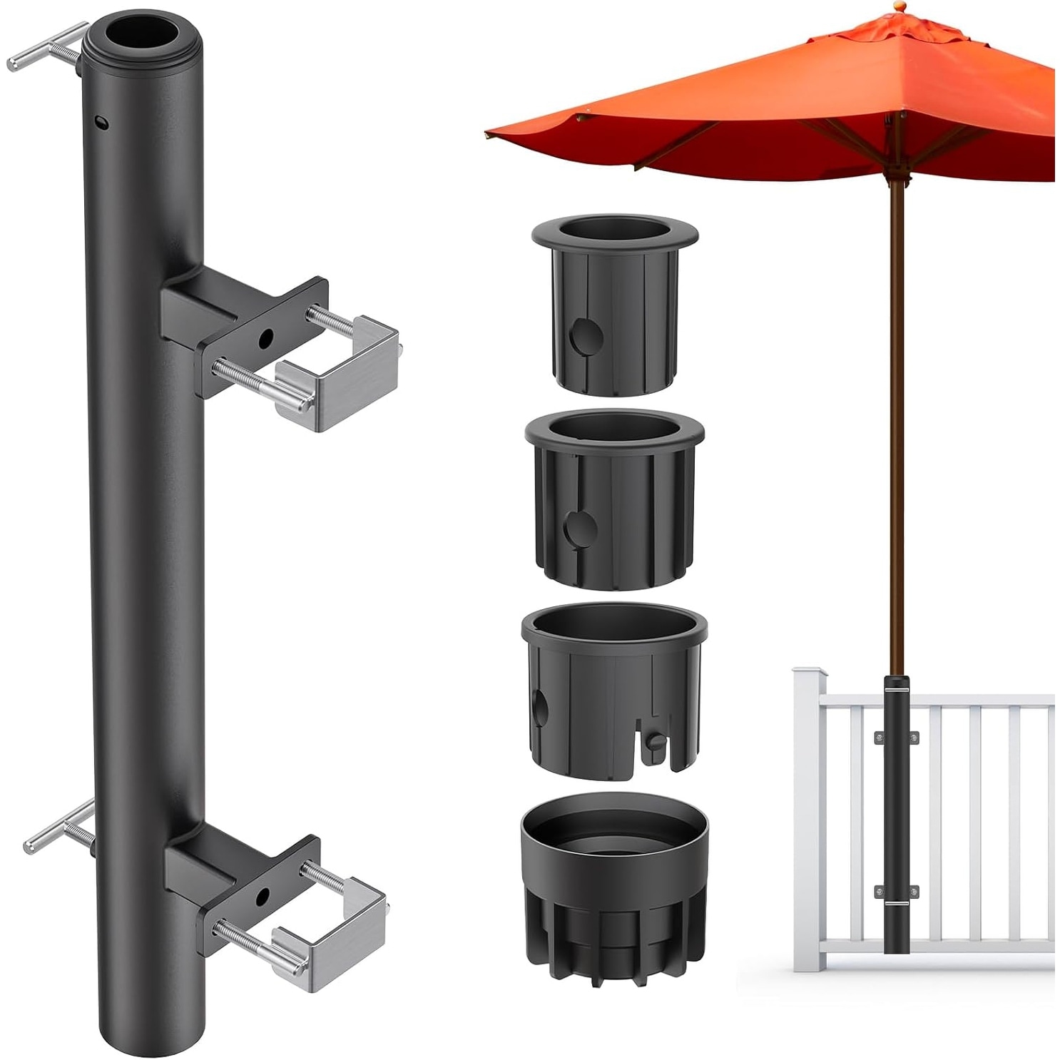 Heavy Duty Patio Umbrella Holder with Steel Deck Clamp, Fits Up to 2'' Umbrella Pole, Space-Saving Design, Easy Installation