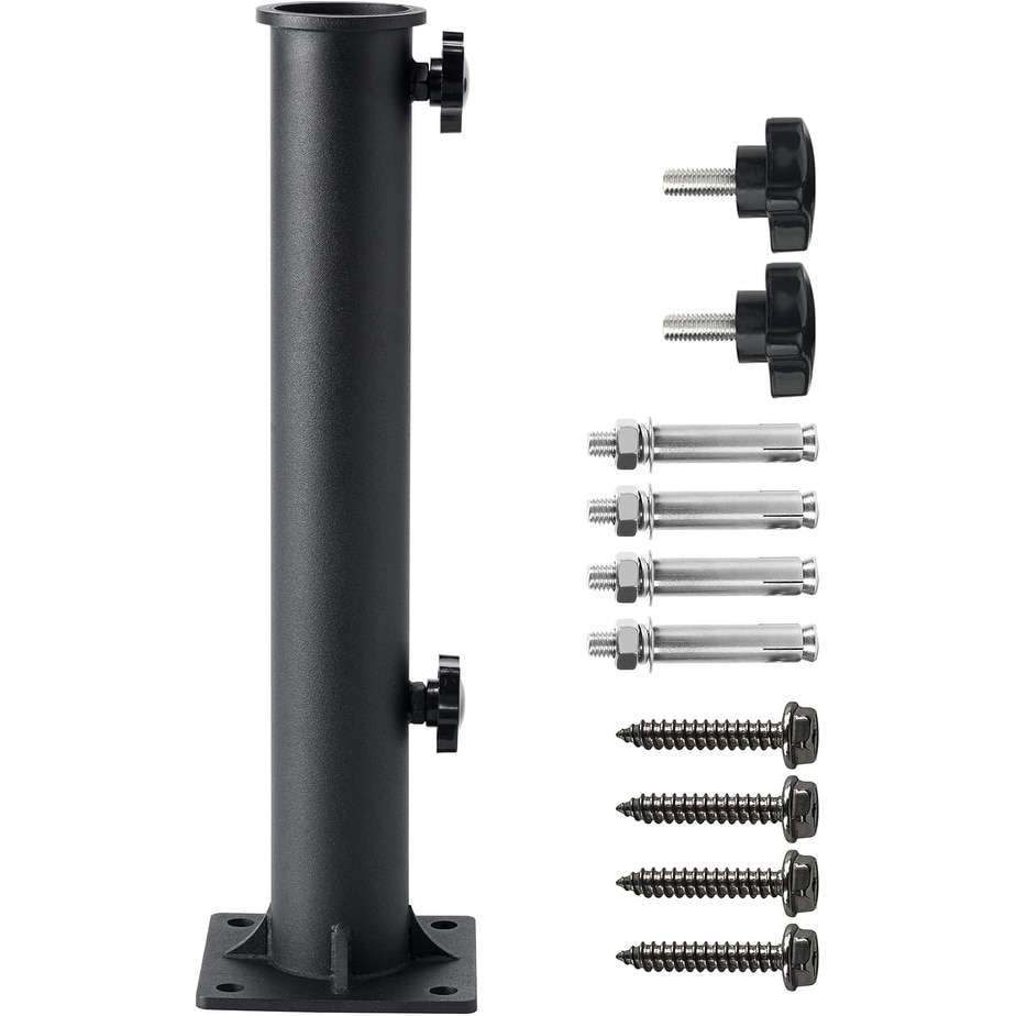 Stainless Steel Outdoor Umbrella Bracket for 1.5-2 inch Poles - Ground Mount Base (Black)