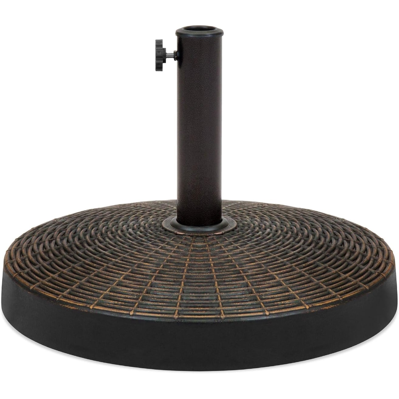 55lb Outdoor Patio Umbrella Stand with Antique Bronze Finish and Wicker Design