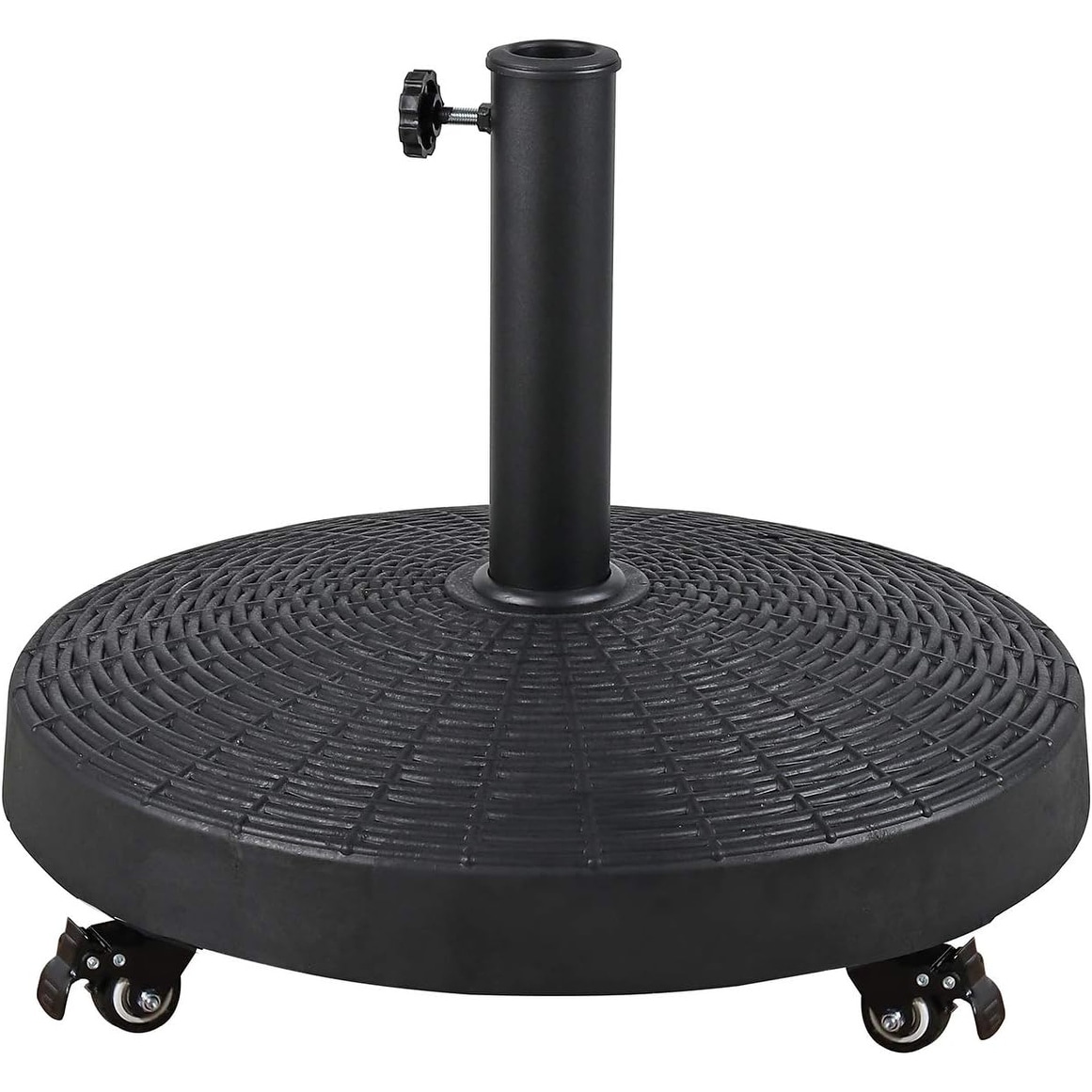 Heavy-Duty Resin Umbrella Base with Wheels and Adjustable Pole Holder, 52lbs, Black
