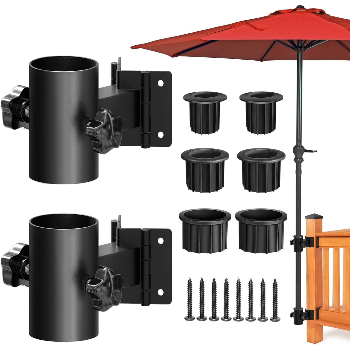 Heavy Duty Stainless Steel Umbrella Deck Mount with Space-Saving Design, Fits Umbrellas up to 2-inch, Black