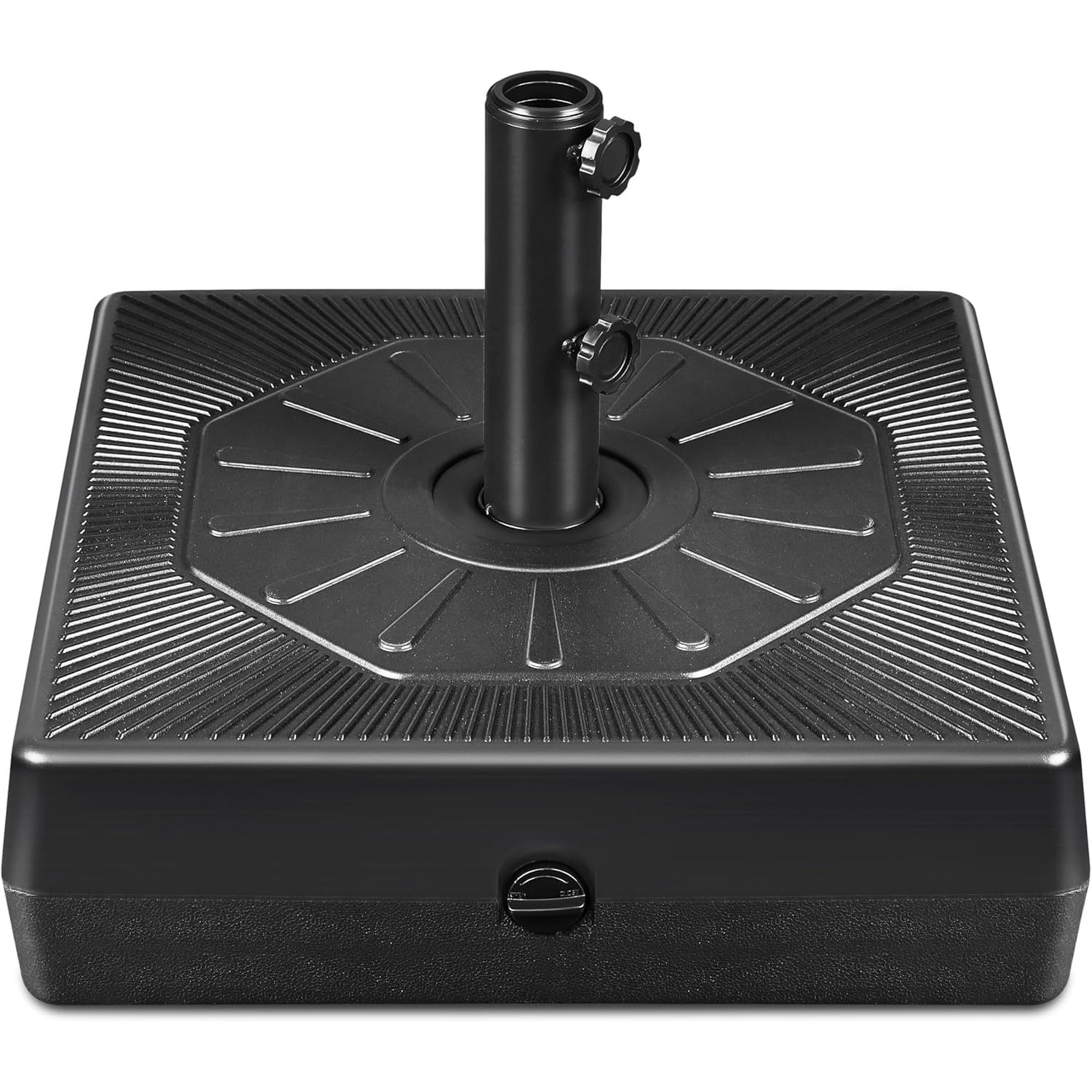 Heavy-Duty Fillable Square Patio Umbrella Base with Double-Side Design, 2 Knobs, for Outdoor Use