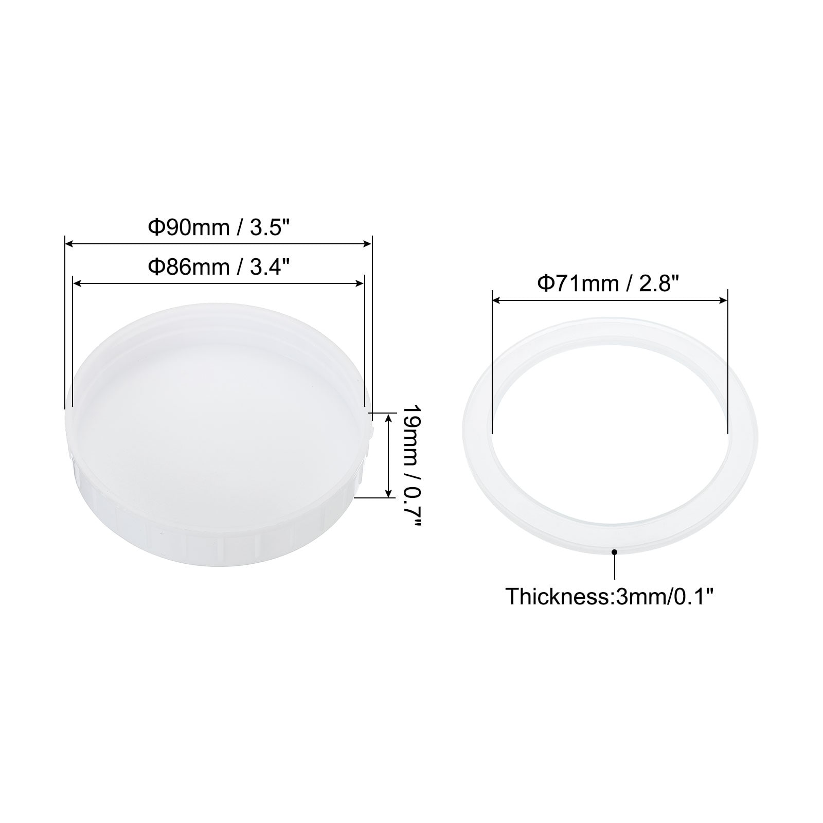70mm Mouth Plastic Mason Jar Lids, 10Pcs Canning Caps w Sealing Ring