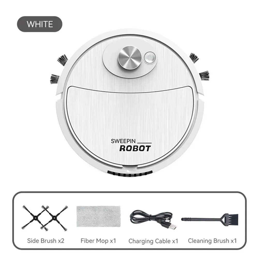 3 in 1 Intelligent Robotic Vacuum: Low Noise Floor Sweeper For Automatic Household Cleaning WHITE