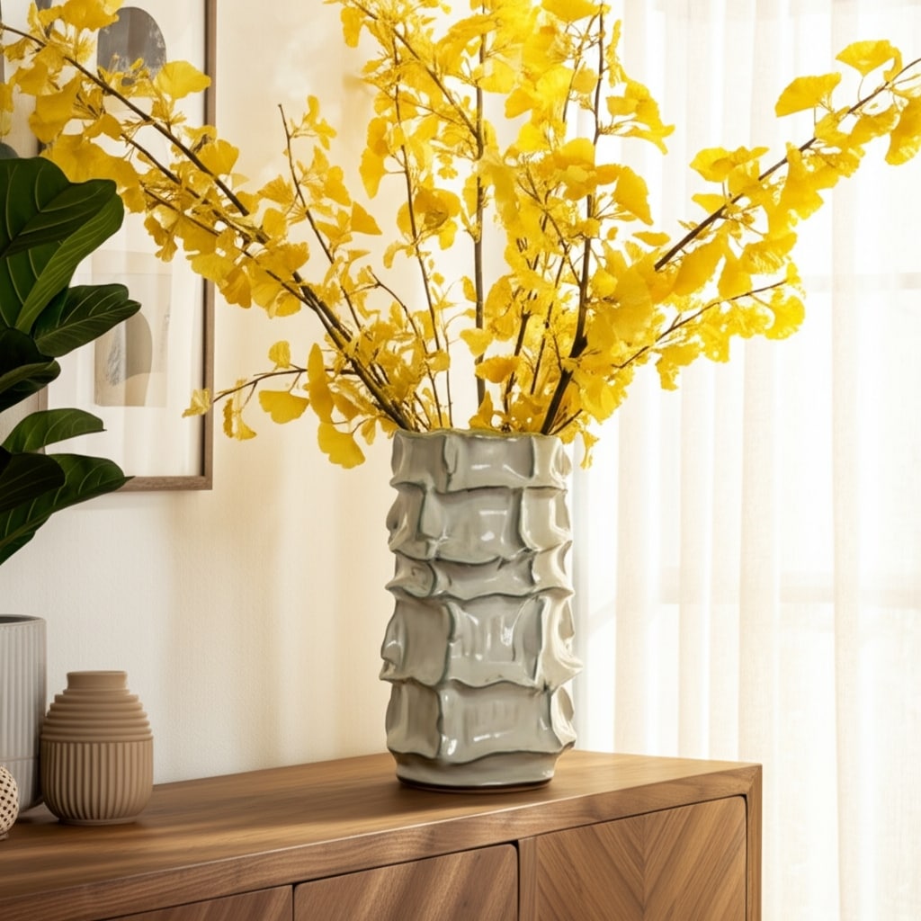 Ceramic Decorative Vase with Ribbed Texture Sculptural Hollow Design