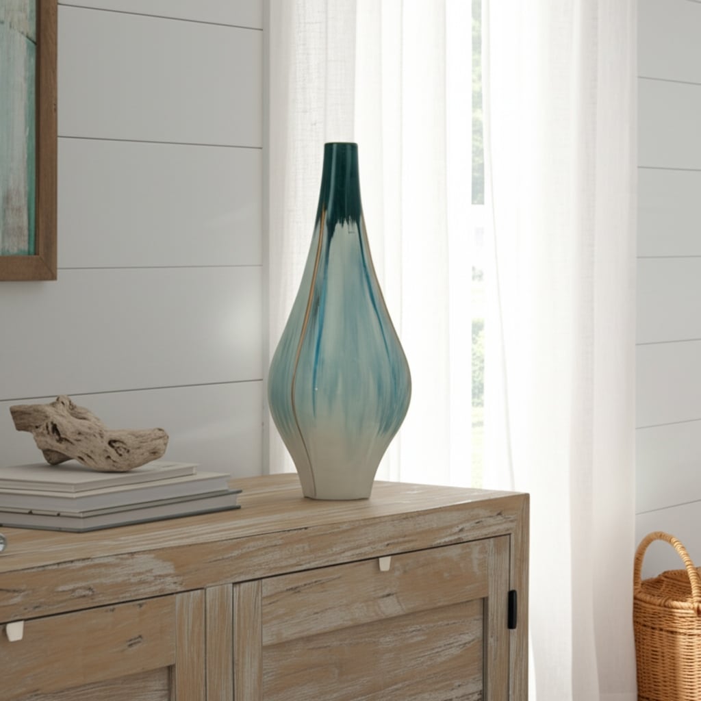 Stoneware Ceramic Decorative Vase with Ocean-Inspired Glaze Finish