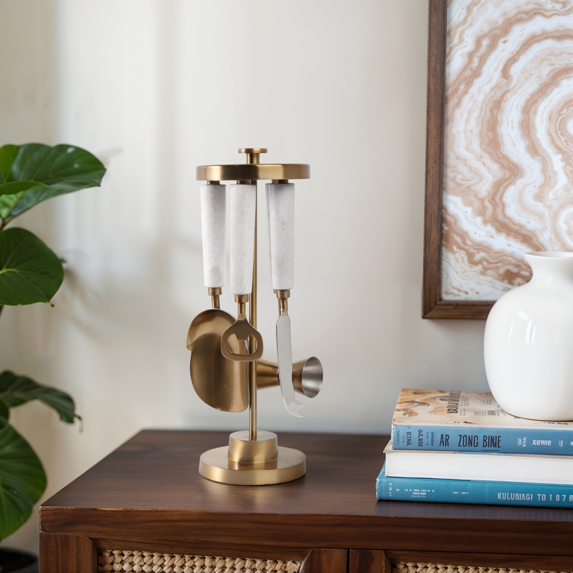Metal Stone Utensil Display Decorative Sleek Stand Modern Accent - 4" x 4" x 13"