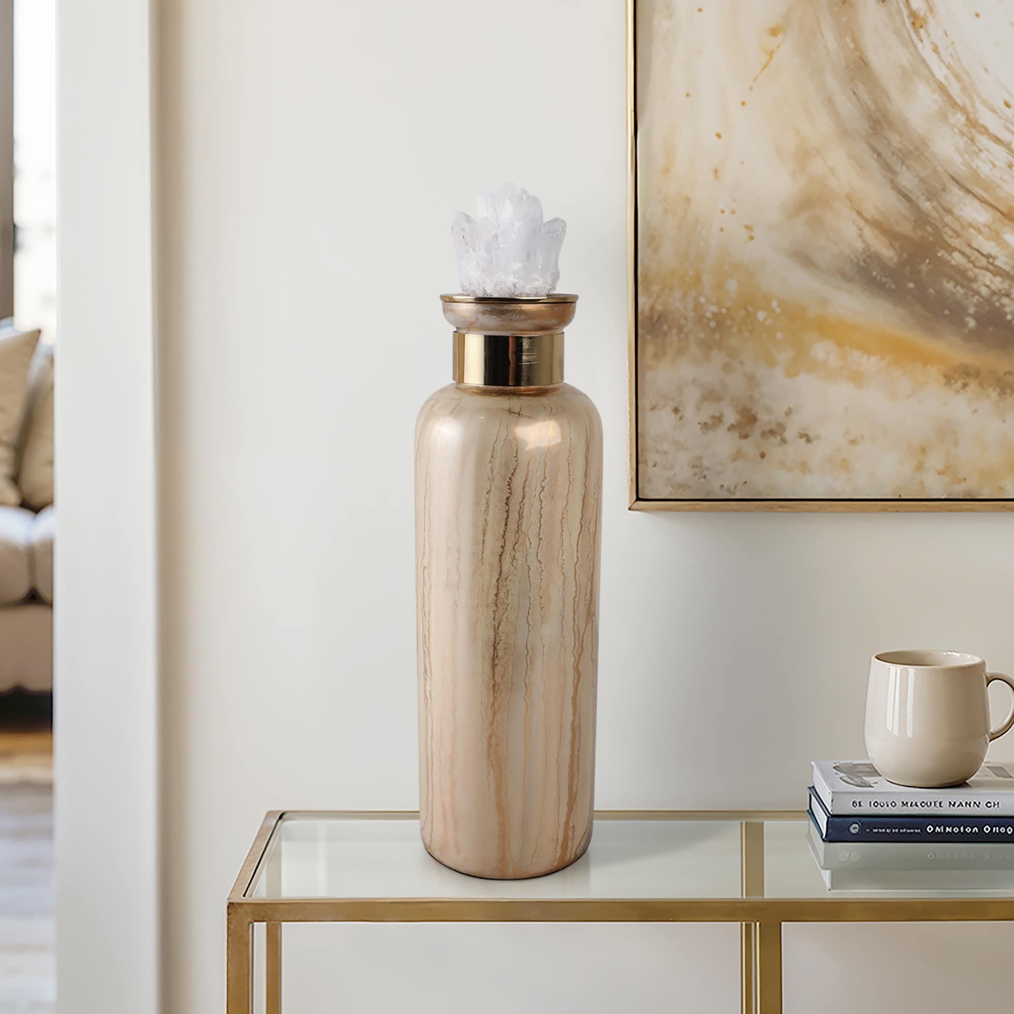 Copper Glass Speckled Ombre Living Room Decorative Jars with Textured Top Knob and Gold and Beige Accents