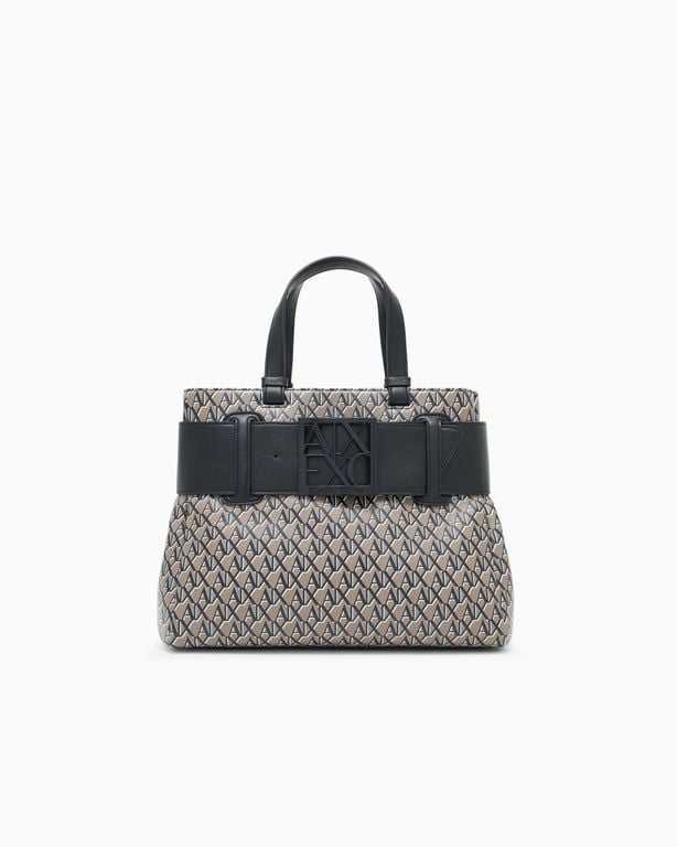 Handbag With Allover Logo - White - ARMANI EXCHANGE Totes