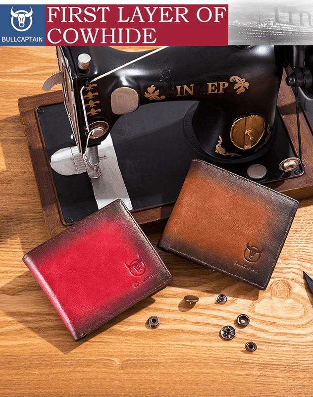 Bullcaptain RFID Blocking Leather Bifold Wallet Slim Mens Card Holder red