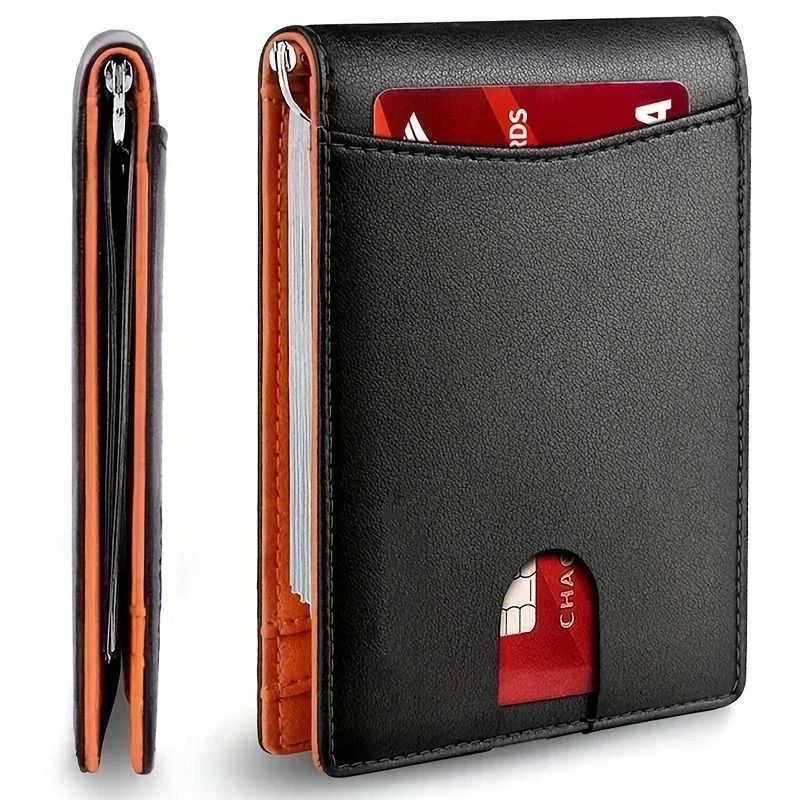 Slim RFID Blocking Wallet For Men Synthetic Leather Bifold Card Holder With Money Clip carbon Fiber Black